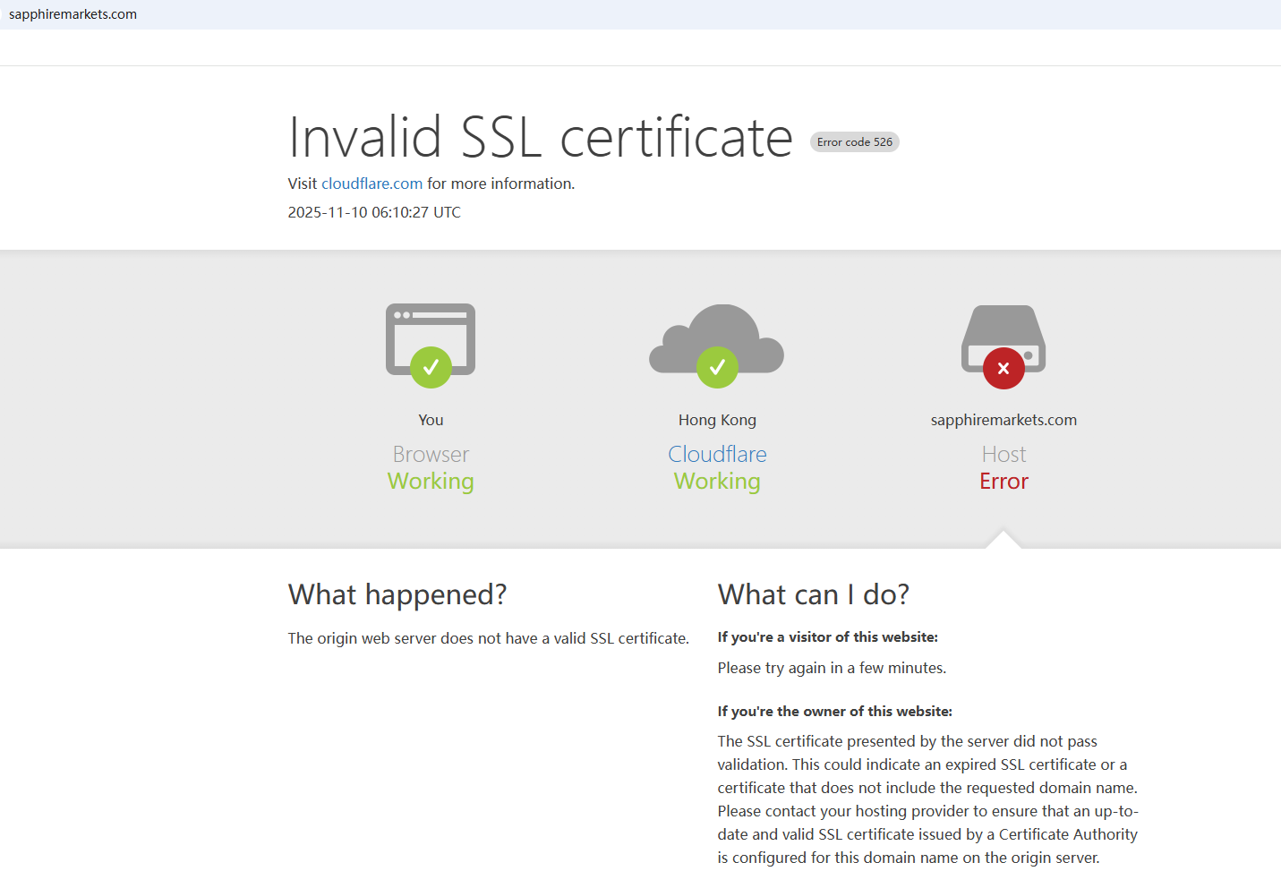 BrokersView found that the domain "https://sapphiremarkets.com/" is currently inaccessible. This is widely regarded as a significant red flag, as the suspension of a broker's website often points to underlying regulatory or operational issues.