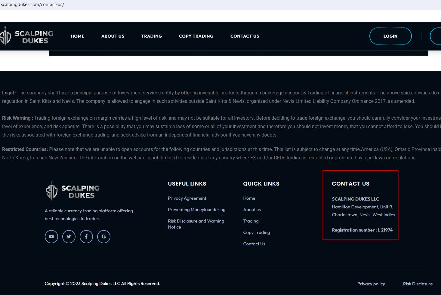 According to its website, it is located in the West Indies, and the registration number is L 21974. Upon investigation, no matching information was found in The Financial Services Regulatory Commission (FSRC).