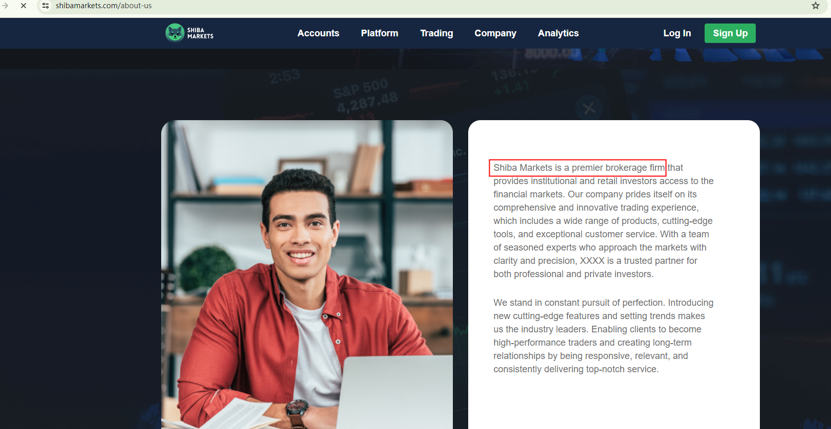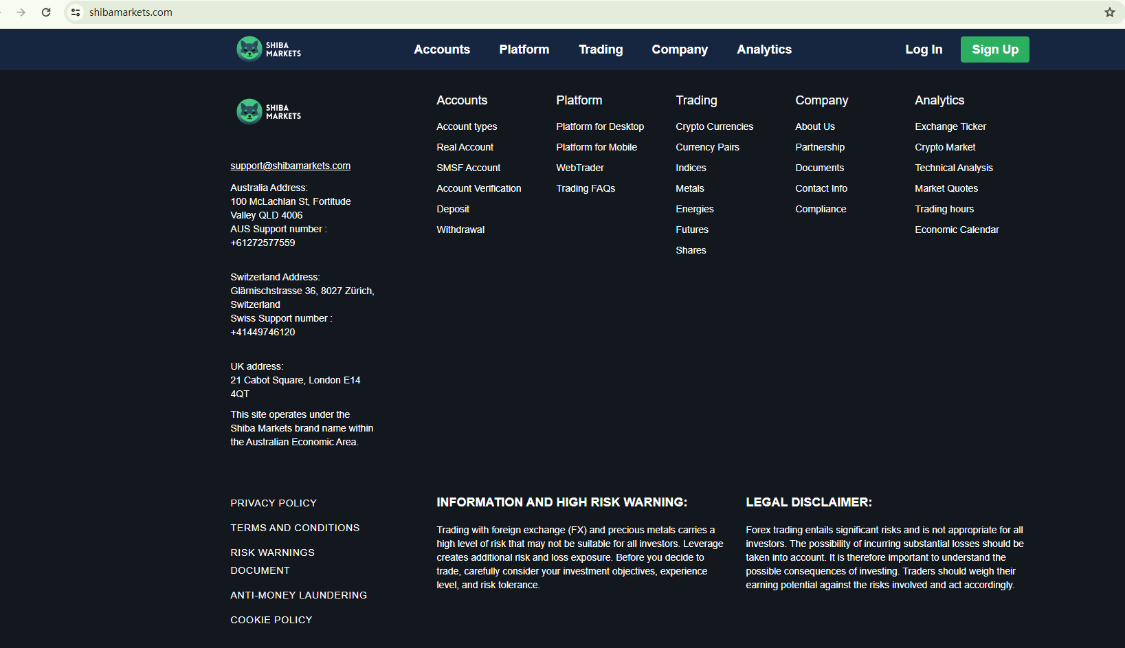 Shiba Markets purports to be a brokerage firm with operations in the UK, Switzerland, and Australia.