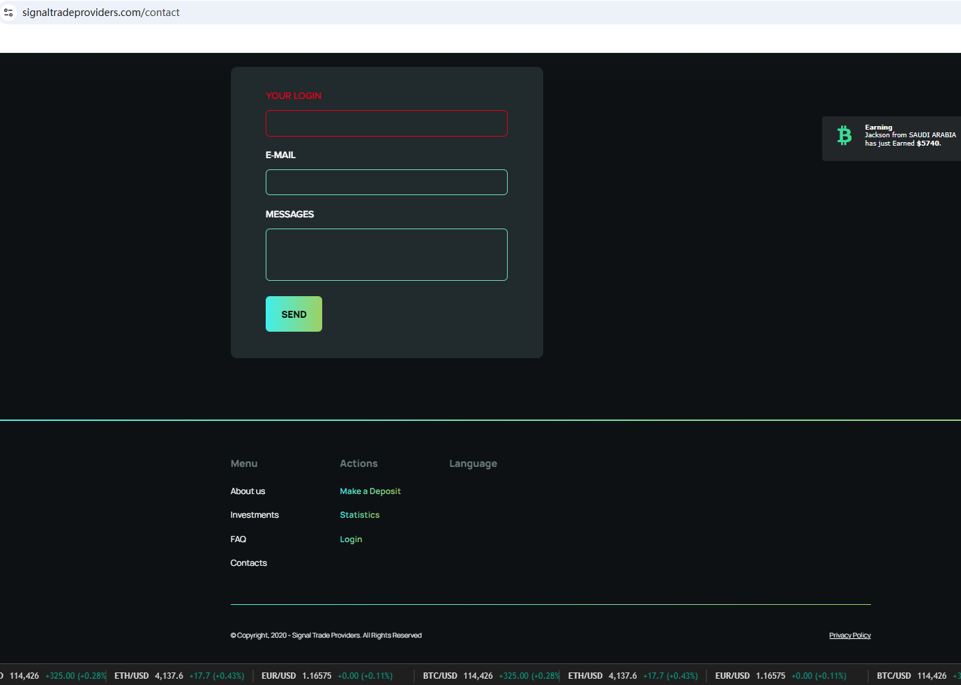 SIGNAL TRADE PROVIDERS is not regulated by any authority. Therefore, SIGNAL TRADE PROVIDERS is a scam.