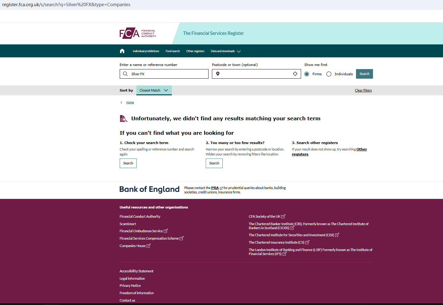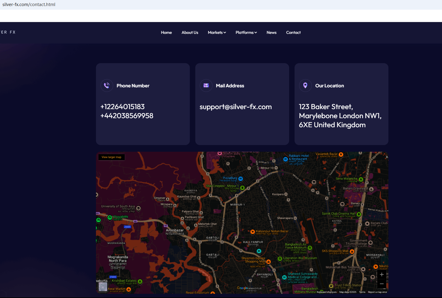According to its website, it is located in the UK. Upon investigation, no matching information was found in the Financial Conduct Authority (FCA). In addition, the Netherlands Authority For the Financial Markets (AFM) issued a warning against Silver FX, believing this company might be providing financial services or products without proper authorization.