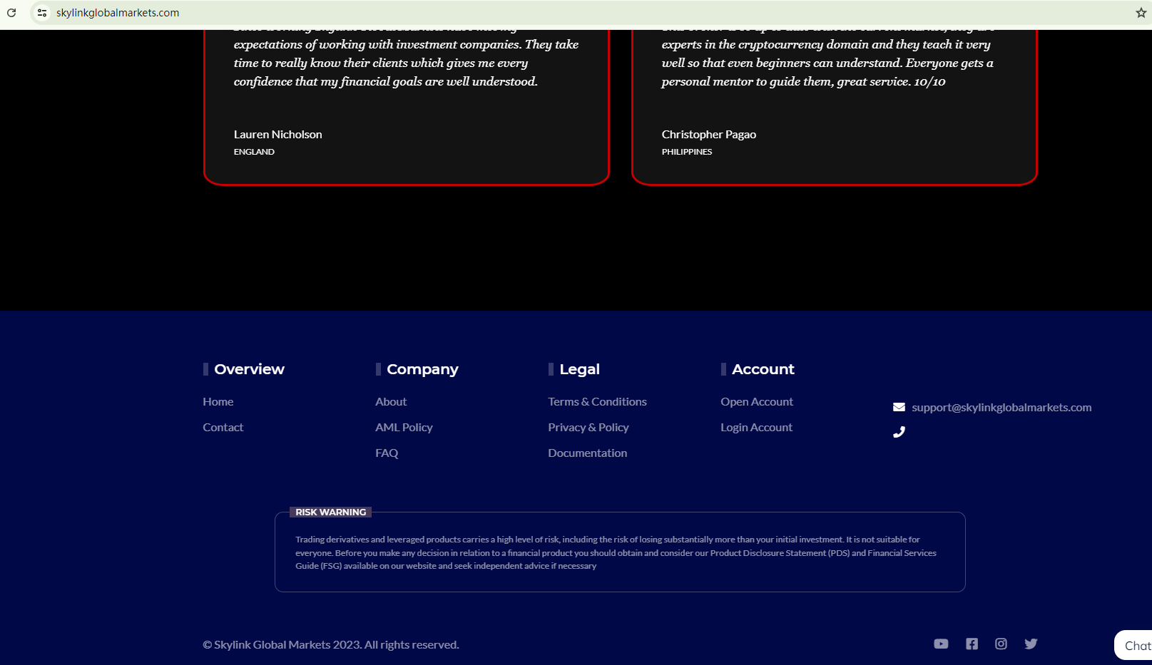 BrokersView found that the domain "https://www.skylinkglobalmarkets.com/" is currently inaccessible. This is widely regarded as a significant red flag, as the suspension of a broker's website often points to underlying regulatory or operational issues.
