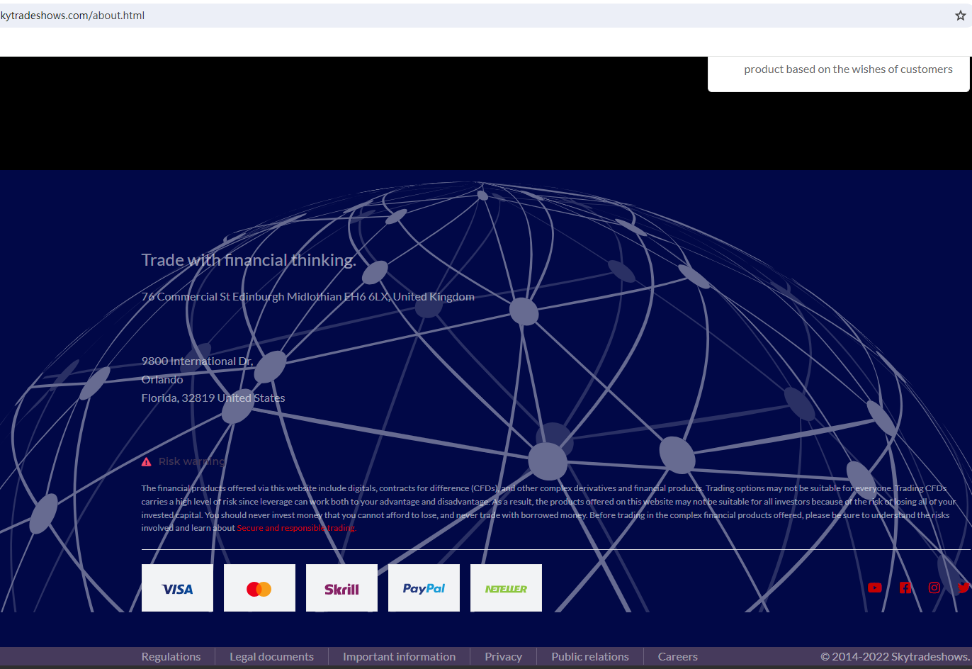 The truth is that SKYTRADESHOW is not regulated by any regulators. Letting it hold or control investors' money is unsafe, and the money can not be protected by any laws.
