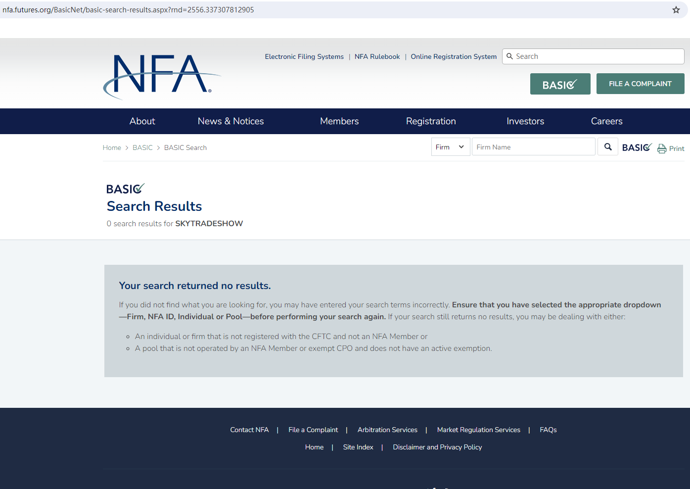 BrokersView found that the domain "skytradeshows.com" is currently inaccessible. This is widely regarded as a significant red flag, as the suspension of a broker's website often points to underlying regulatory or operational issues.