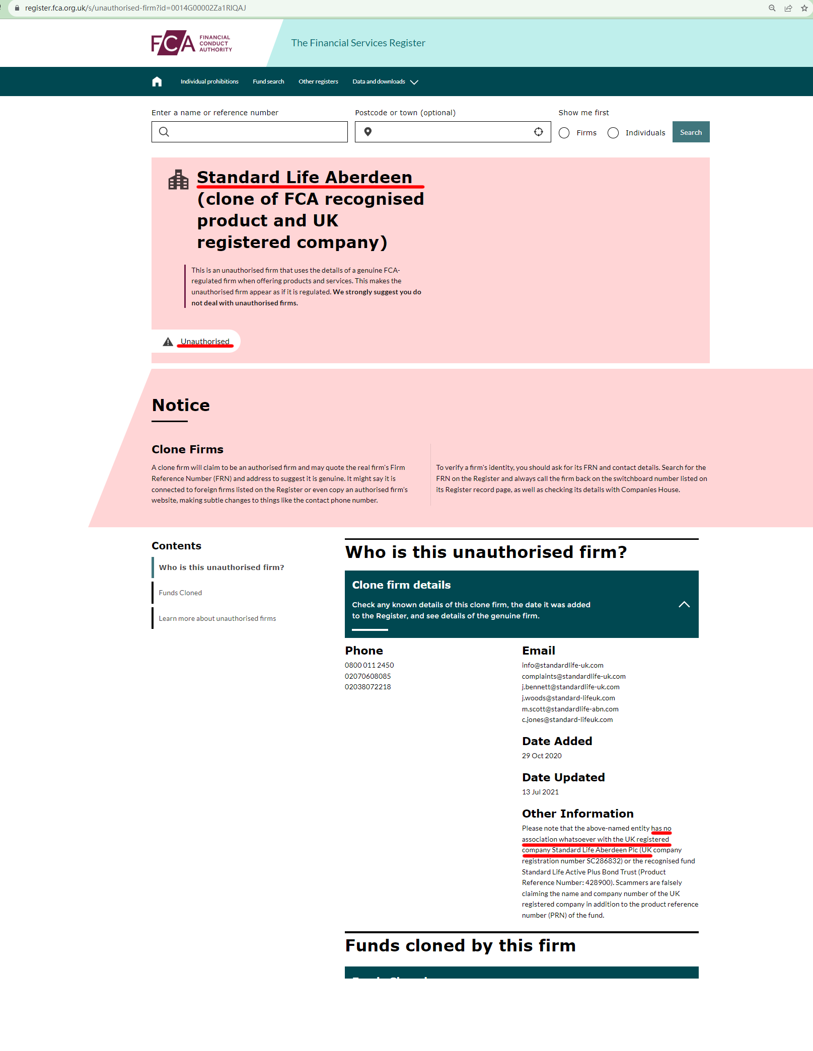 However, the Financial Conduct Authority (FCA) has confirmed that Standard Life Aberdeen is a clone of an FCA-authorized entity. It is evident that SlaTrade is a scam. Therefore, entrusting this broker with investors' funds is highly risky. Investors must avoid SlaTrade at all costs.