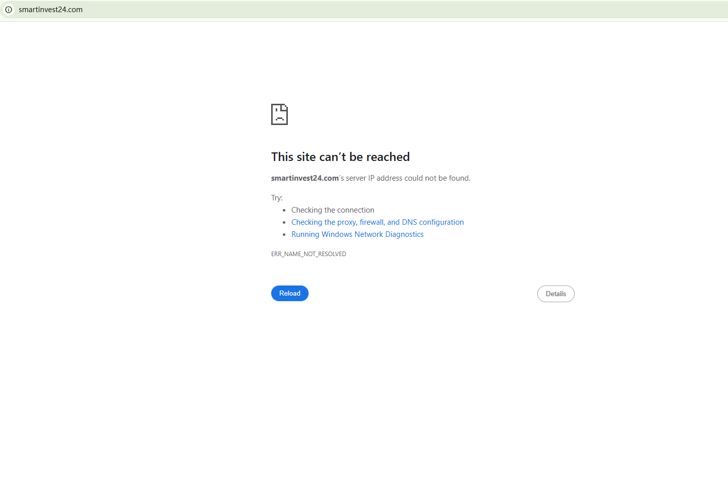 BrokersView found that the domain "https://smartinvest24.com/" is currently inaccessible. This is widely regarded as a significant red flag, as the suspension of a broker's website often points to underlying regulatory or operational issues.
