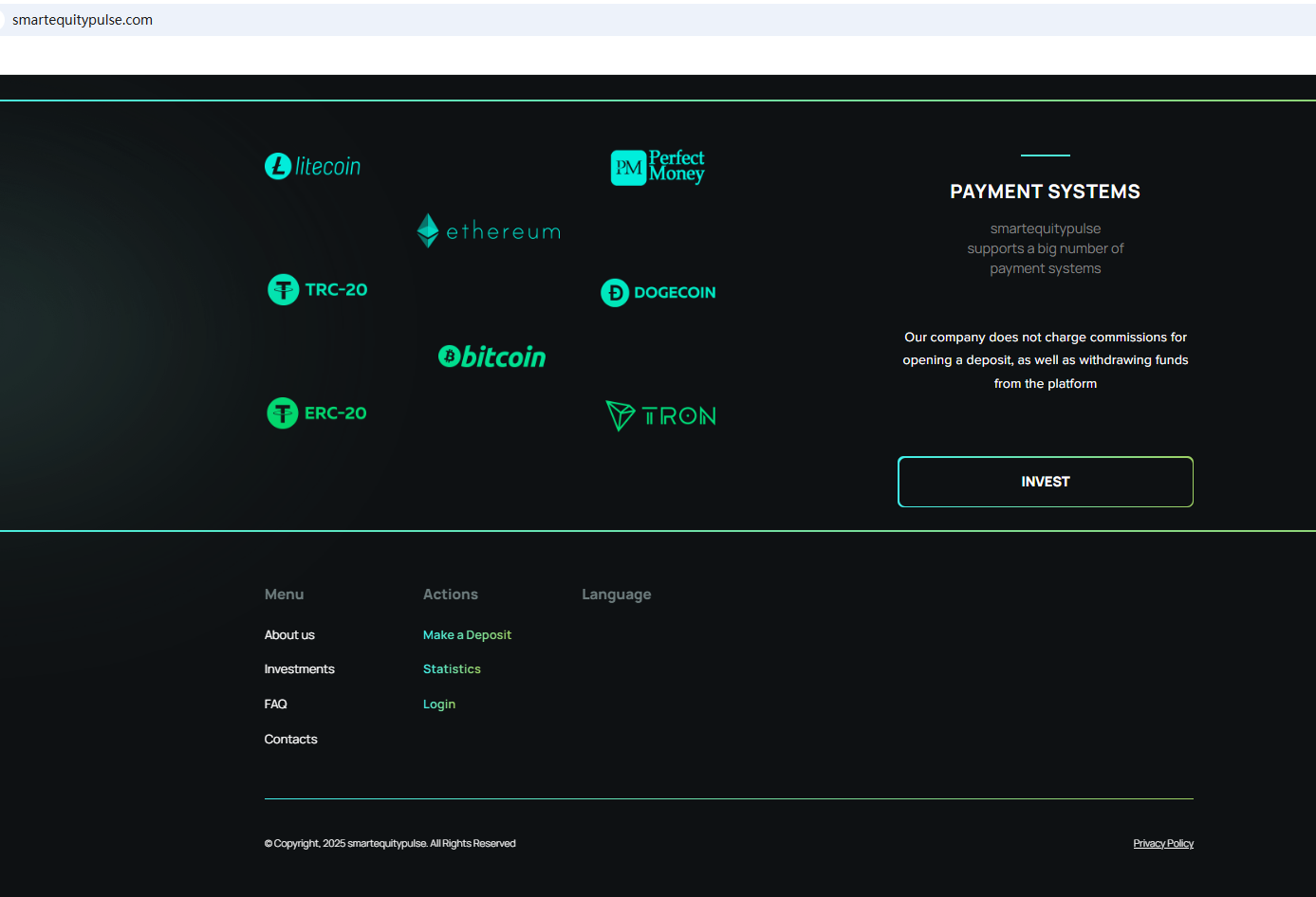 On March 26, 2025, the Financial Conduct Authority (FCA) issued a warning against smartequitypulse for the lack of the required authorization. https://www.fca.org.uk/news/warnings/smartequitypulse