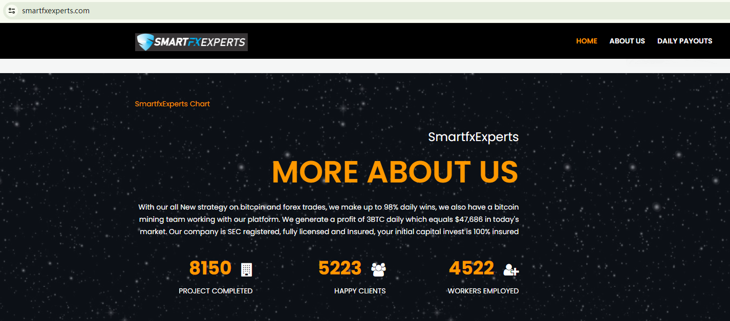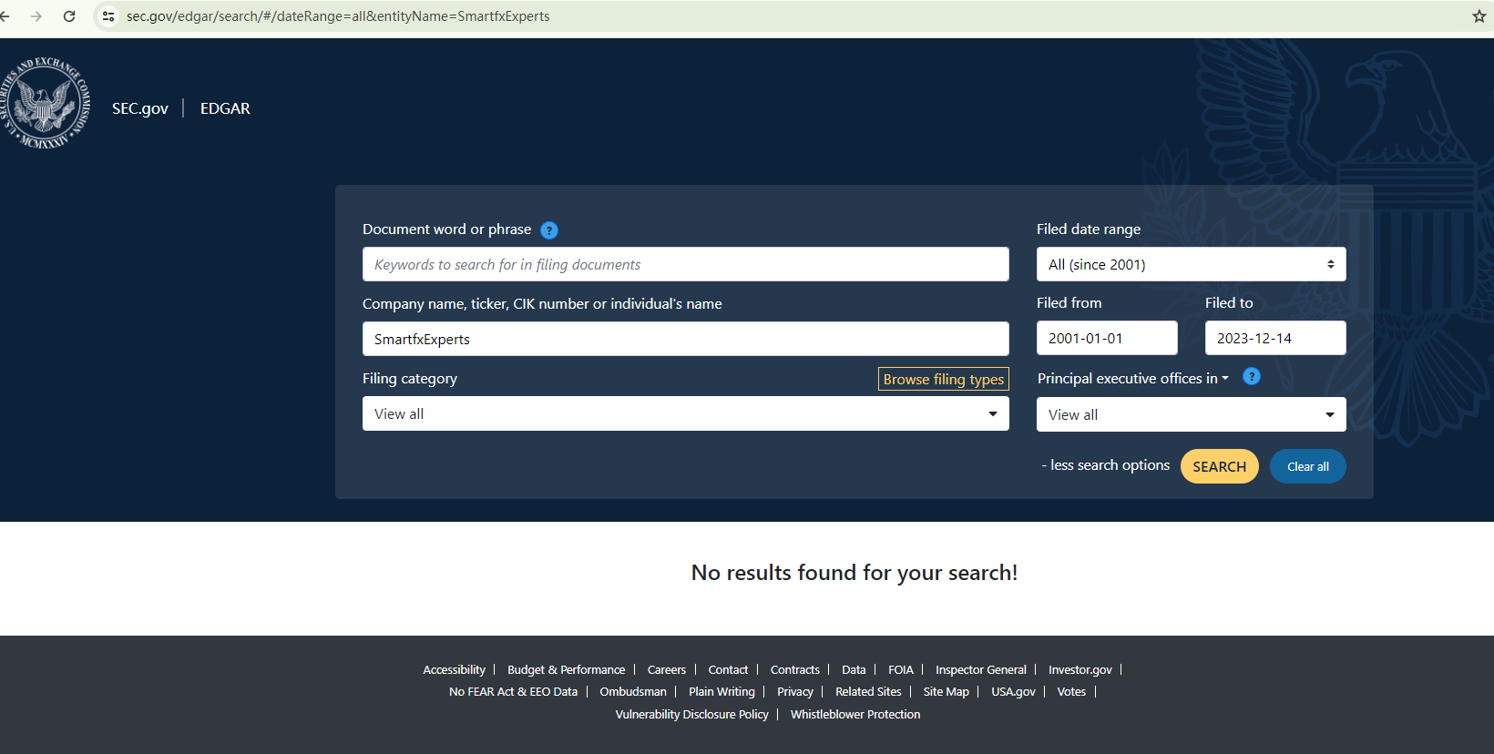 This emerging broker, SmartfxExperts, whose domain name (smartfxexperts.com) was first registered in February 2023, claims to have at least 5,223 clients and 4,522 employees. It alleges registration with the U.S. Securities and Exchange Commission (SEC), but our search in the SEC registry yielded no results. This discrepancy raises a red flag for potential scams.