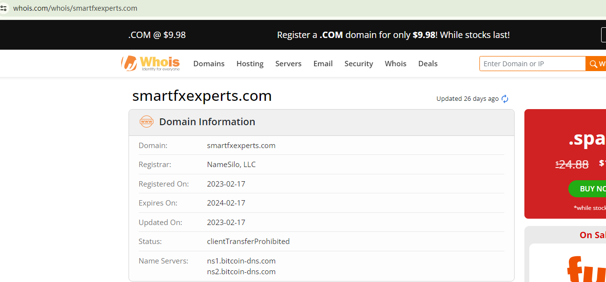 BrokersView found that the domain "smartfxexperts.com" is currently inaccessible. This is widely regarded as a significant red flag, as the suspension of a broker's website often points to underlying regulatory or operational issues.