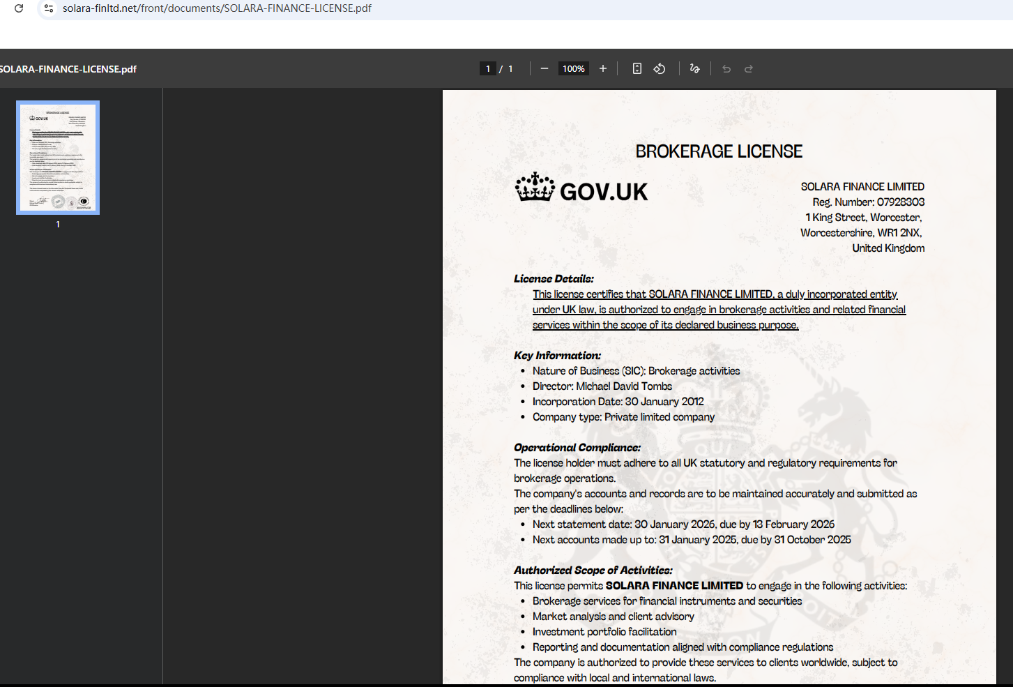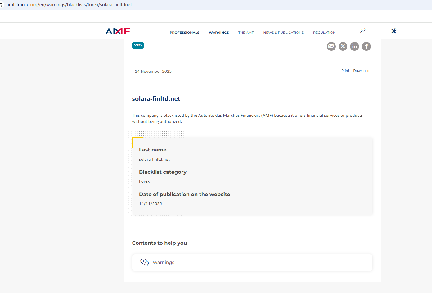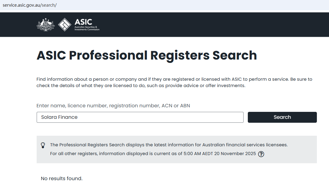 On Nov 14, 2025, the Financial Authority (Autorité des Marchés Financiers, AMF) added Solara Finance Limited to the warning list for it being an unauthorized company engaging in forex activities. https://www.amf-france.org/en/warnings/blacklists/forex/solara-finltdnet