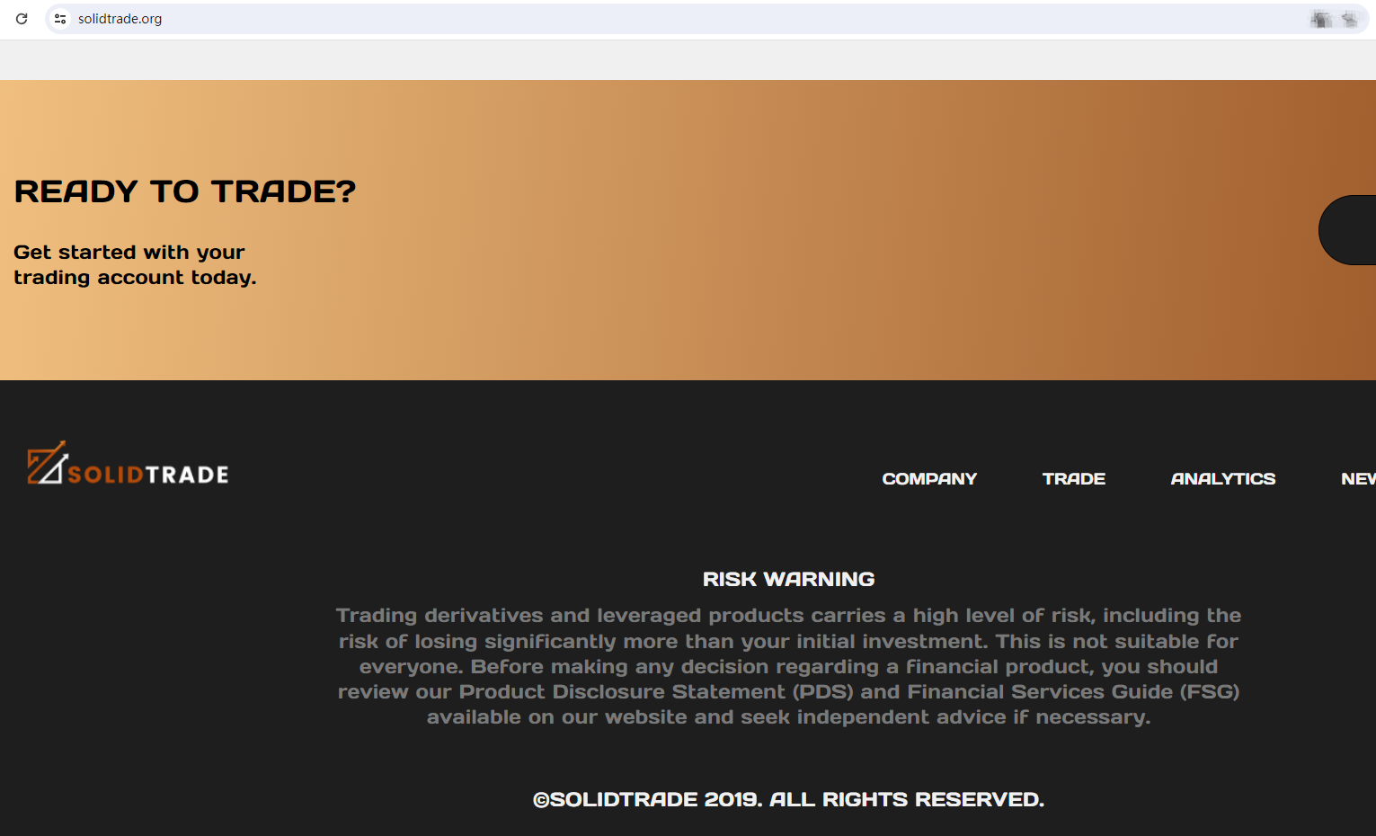 SOLID TRADE claims to be a reliable company without presenting any information about its regulation or contact. The lack of such important information may be a distinct signal of an unlicensed broker, as regulated companies always present their accreditations and licenses in a prominent position. It is a red flag.