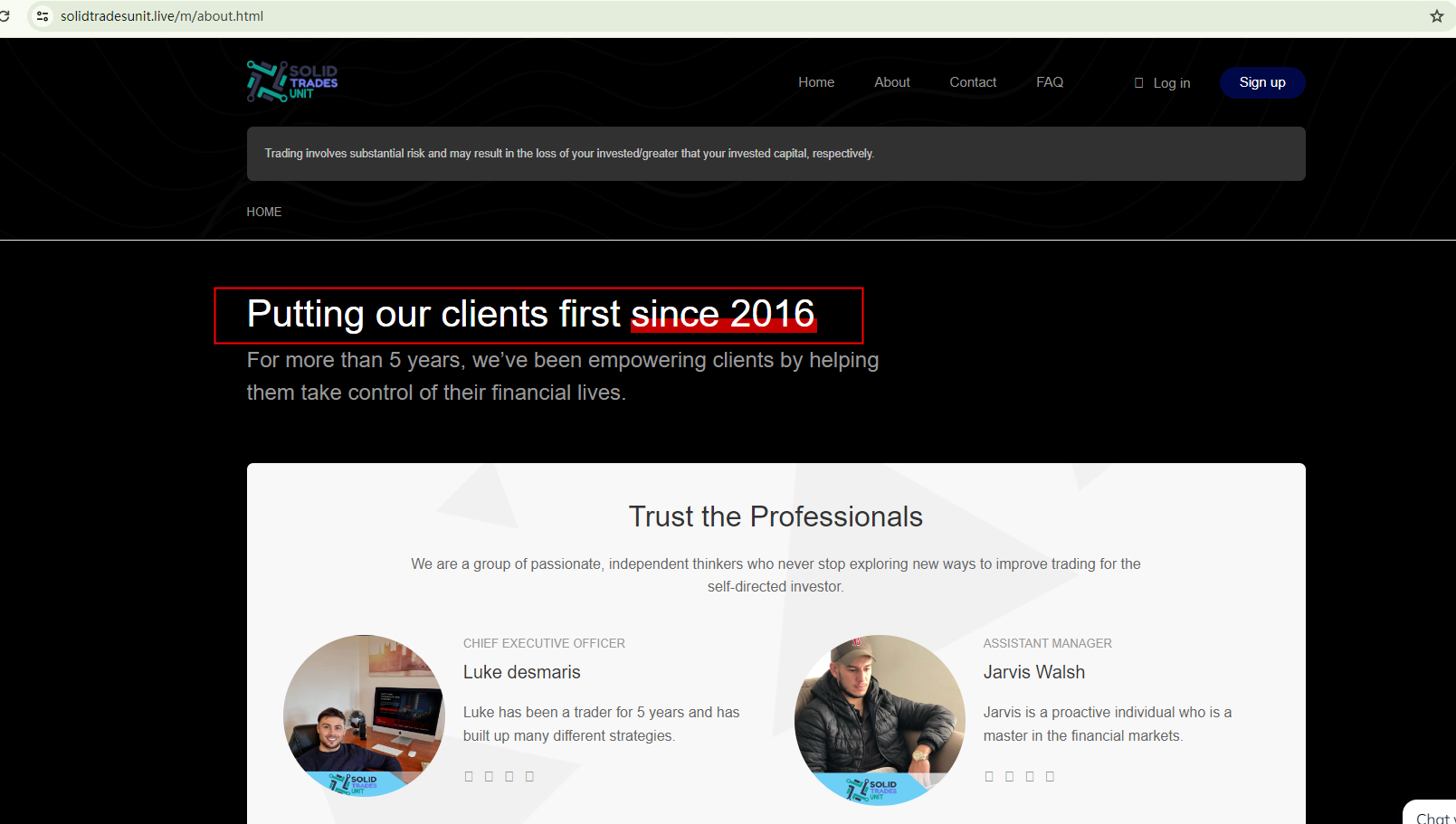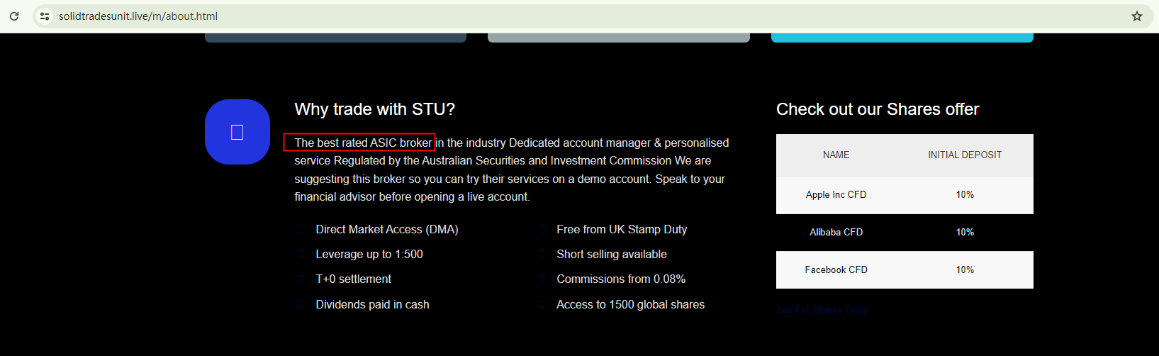 Brokers like SOLID TRADES UNIT typically do not alter much of the content, leading to identical self-statements such as "Putting our clients first since 2016" or "Best rated ASIC broker". Sometimes, these entities even share the same physical address. Our investigation suggests that all these claims are unfounded.