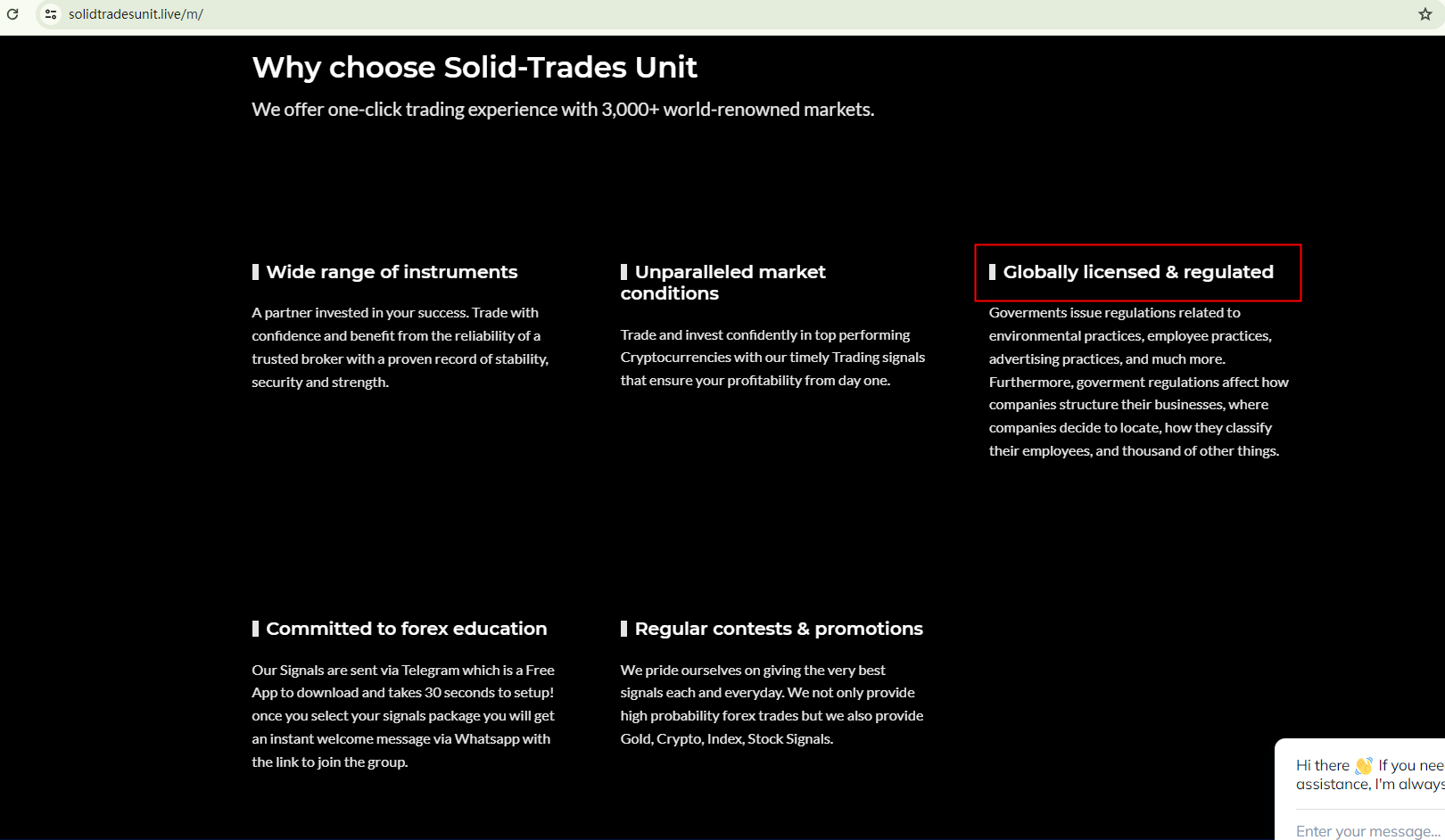 SOLID TRADES UNIT is an online platform that uses a website template commonly associated with fraudulent activities. This template provides pre-written content and graphic designs, making it quick and easy to establish a professional-looking website. However, a closer examination of the website reveals several signs of potential fraud schemes.