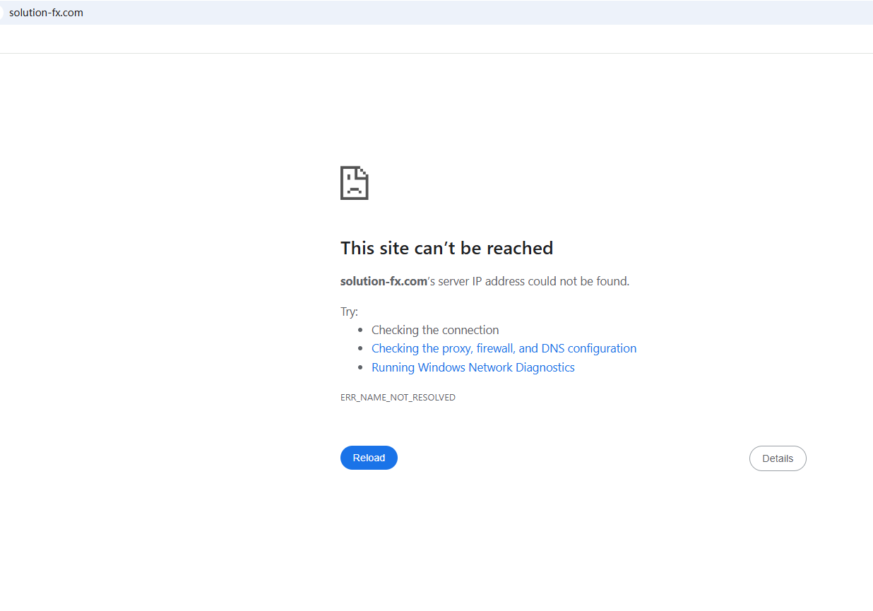 BrokersView found that the domain "https://solution-fx.com/" is currently inaccessible. This is widely regarded as a significant red flag, as the suspension of a broker's website often points to underlying regulatory or operational issues.