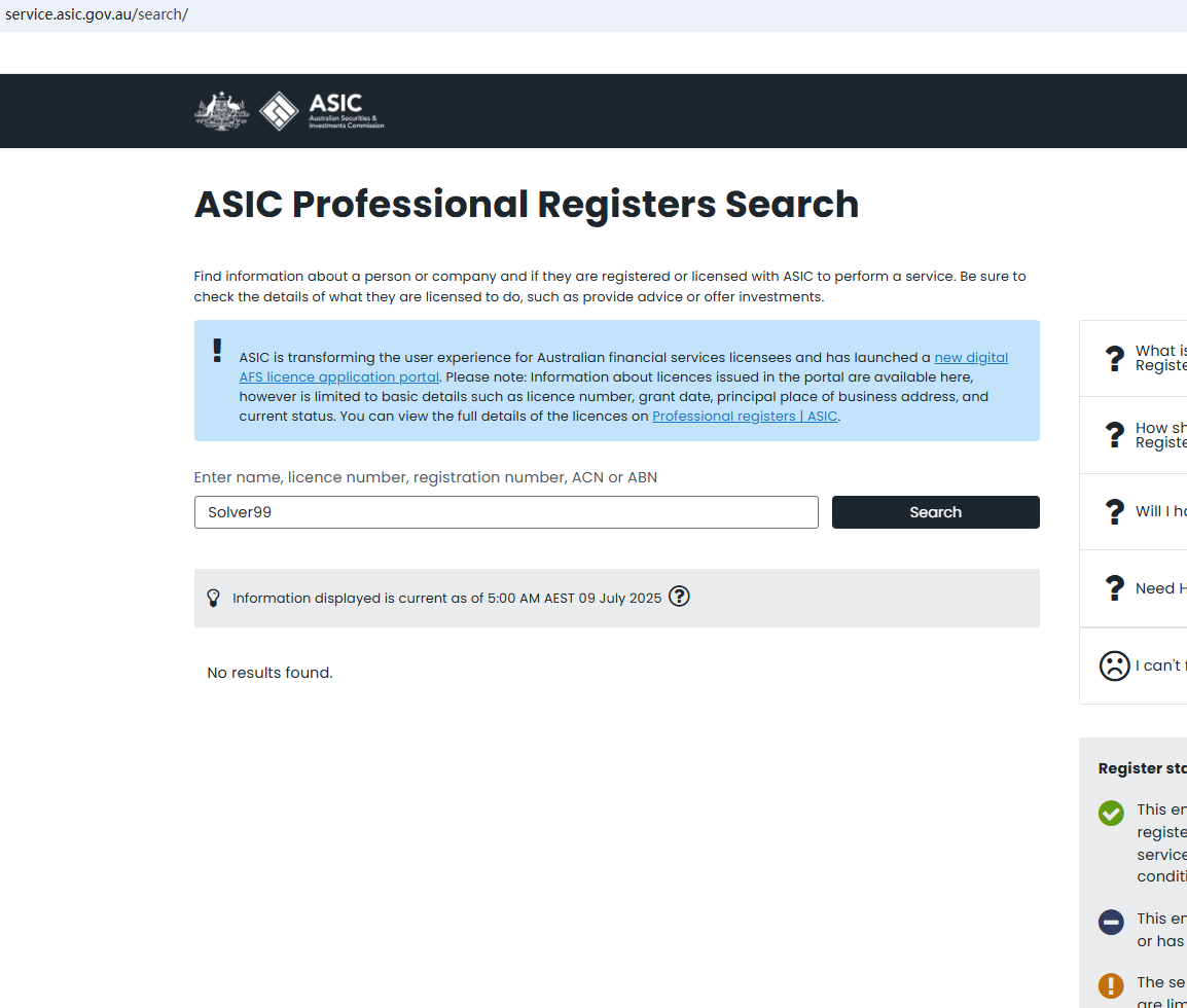 In essence, Solver99 is not regulated by any governing body. Entrusting it with investors' funds is highly risky, as there are no legal protections in place to safeguard the funds. Solver99 appears to be a scam.