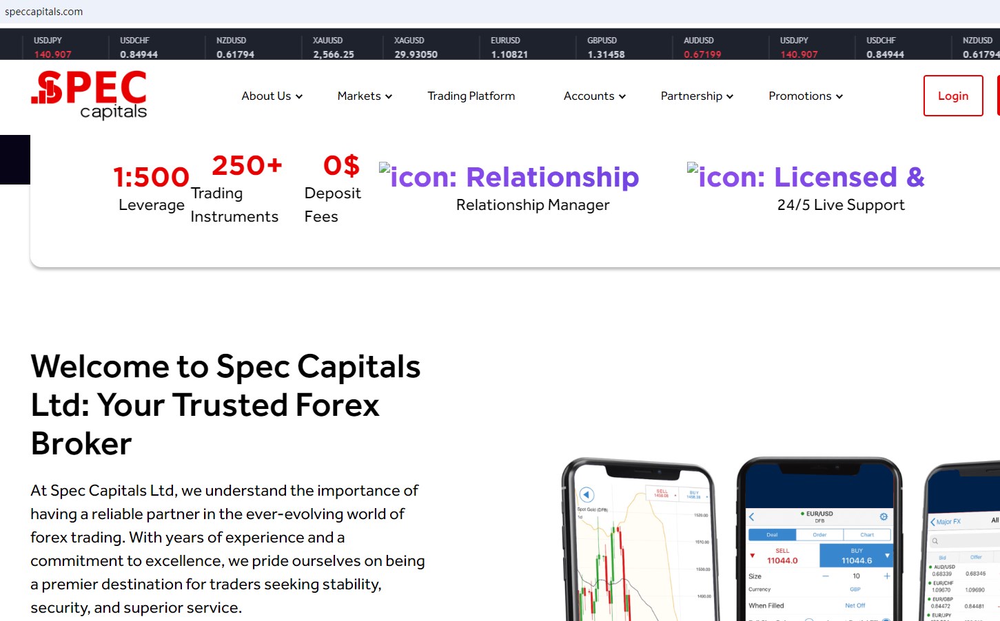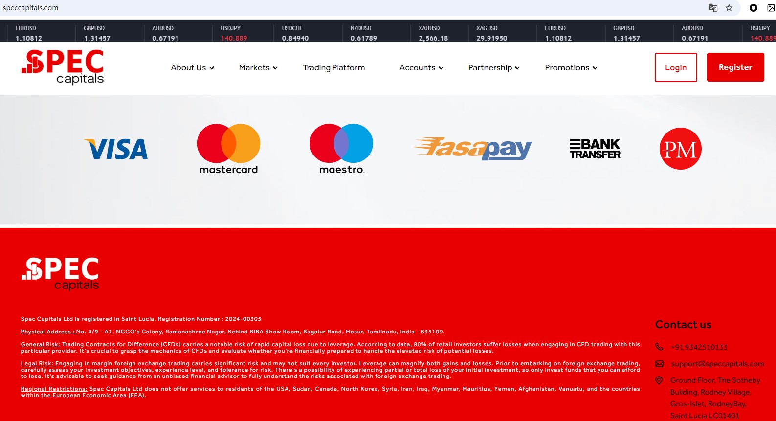 Spec Capitals Ltd claims to be registered in Saint Lucia under registration number 2024-00305, is a brokerage firm operated in India, which offers a range of investment products to traders, including Forex, Stocks, Indices, Commodities, Metals and more instruments for trading in global markets.