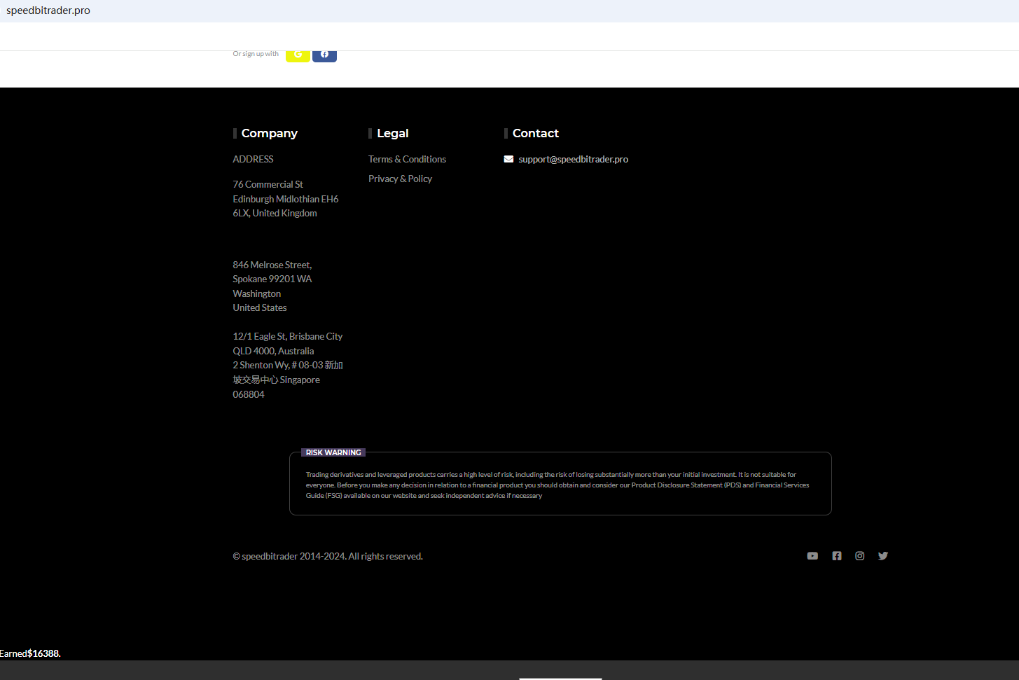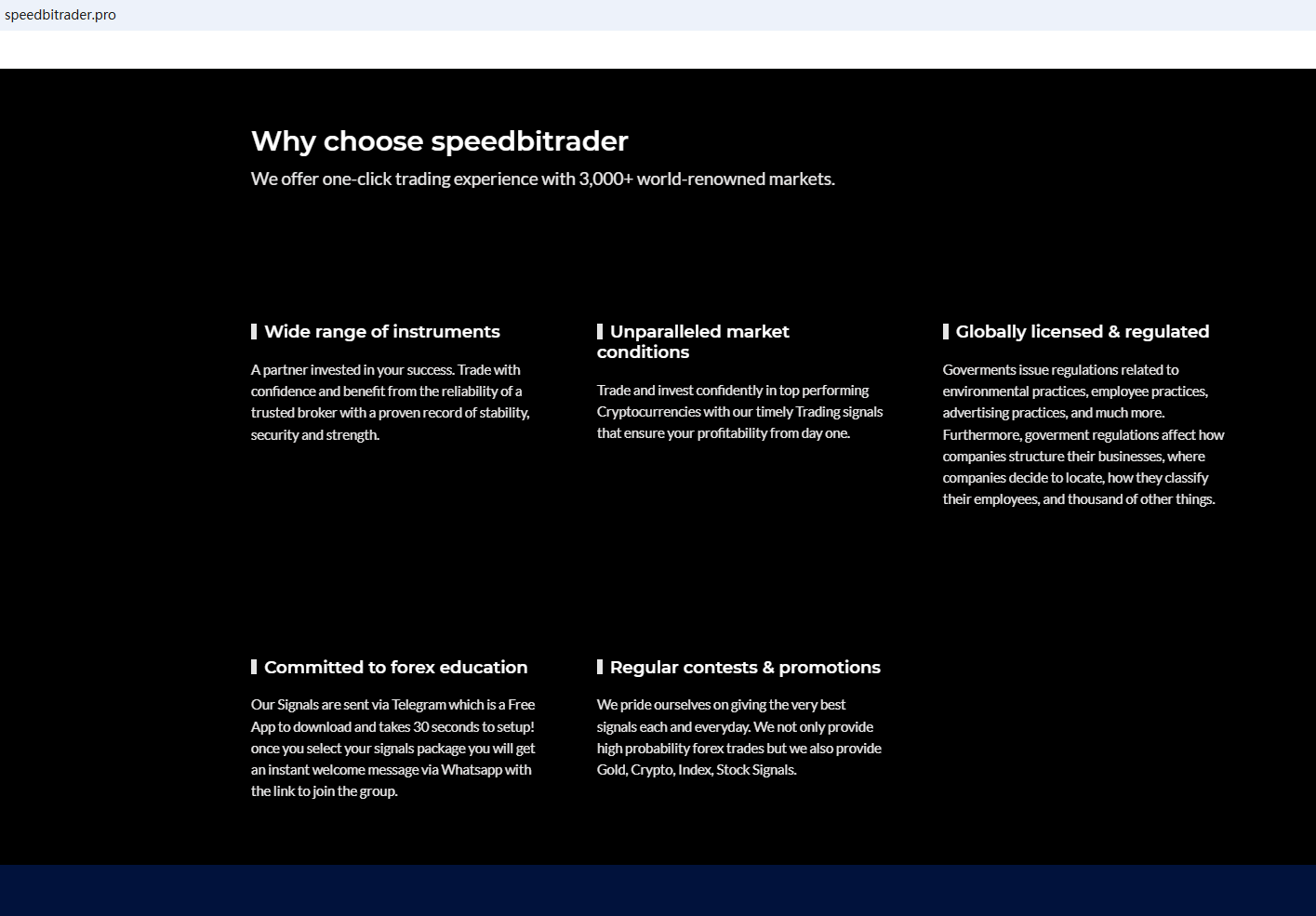 In essence, SPEED BIT TRADER is not regulated by any governing body. Entrusting it with investors' funds is highly risky, as there are no legal protections in place to safeguard the funds. SPEED BIT TRADER appears to be a scam.
