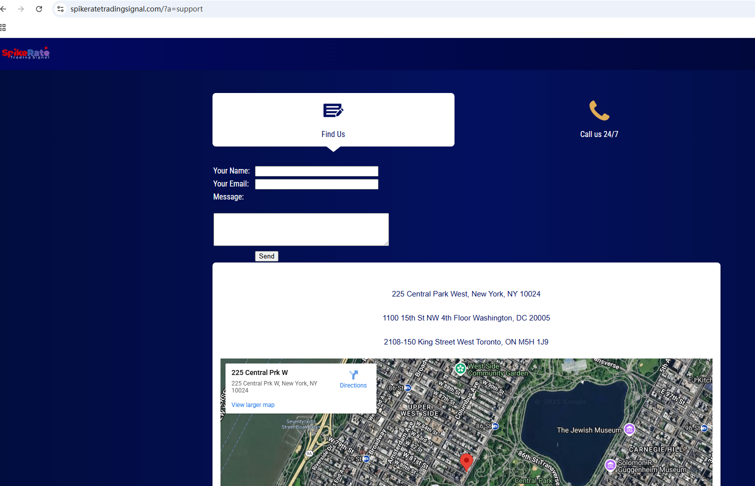 According to its website, it is located in the United States. Upon investigation, no matching information was found in the National Futures Association (NFA). In addition, the Australian Securities & Investments Commission (ASIC) issued a warning against Spike Rate Trading Signal, believing this company might be providing financial services or products without proper authorization.