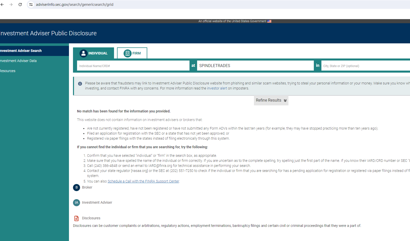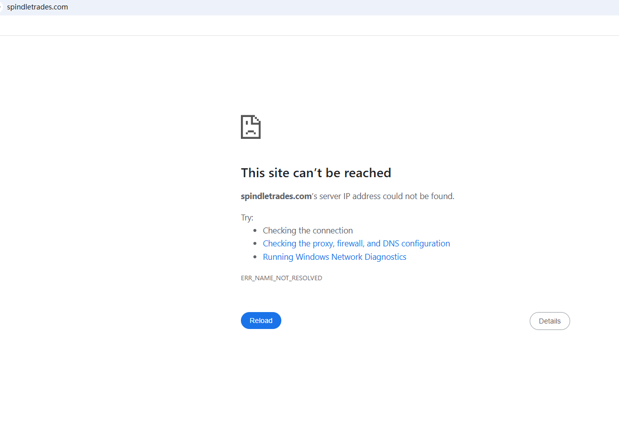 BrokersView found that the domain "https://spindletrades.com/" is currently inaccessible. This is widely regarded as a significant red flag, as the suspension of a broker's website often points to underlying regulatory or operational issues.