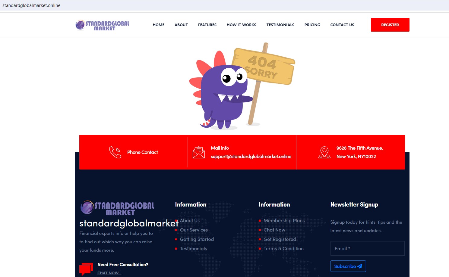 BrokersView found that the domain "standardglobalmarket.online" is currently inaccessible. This is widely regarded as a significant red flag, as the suspension of a broker's website often points to underlying regulatory or operational issues.