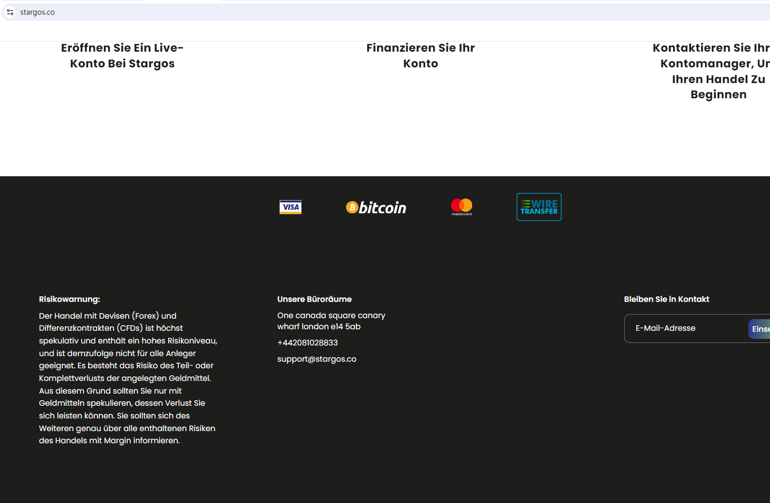 In addition, the Federal Financial Supervisory Authority (BaFin) warned consumers about the website stargos.co, stating that the financial and investment services are being provided on this website without the required authorization.