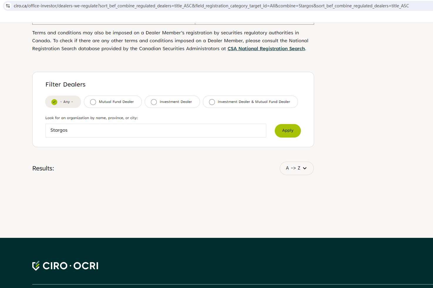 In essence, Stargos is not regulated by any governing body. Entrusting it with investors' funds is highly risky, as there are no legal protections in place to safeguard the funds.