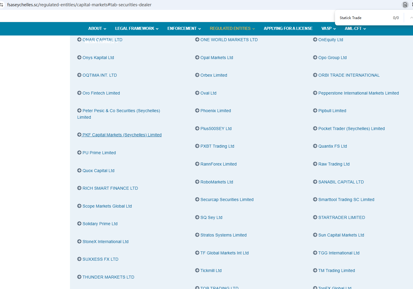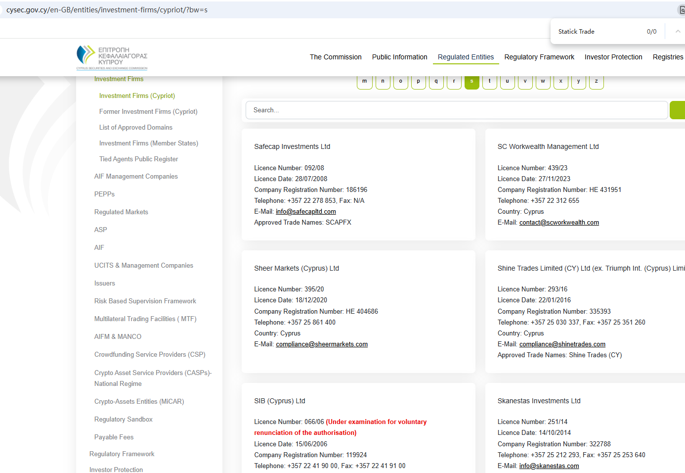According to its website, it claims to be regulated by the Seychelles Financial Services Authority (Seychelles FSA) and the Cyprus Securities and Exchange Commission (CySEC). Upon investigation, no matching information was found in the Seychelles FSA and CySEC. In addition, the Financial Conduct Authority (FCA) issued a warning regarding Statick Trade, suspecting that this company may be offering financial services or products without the necessary authorization.