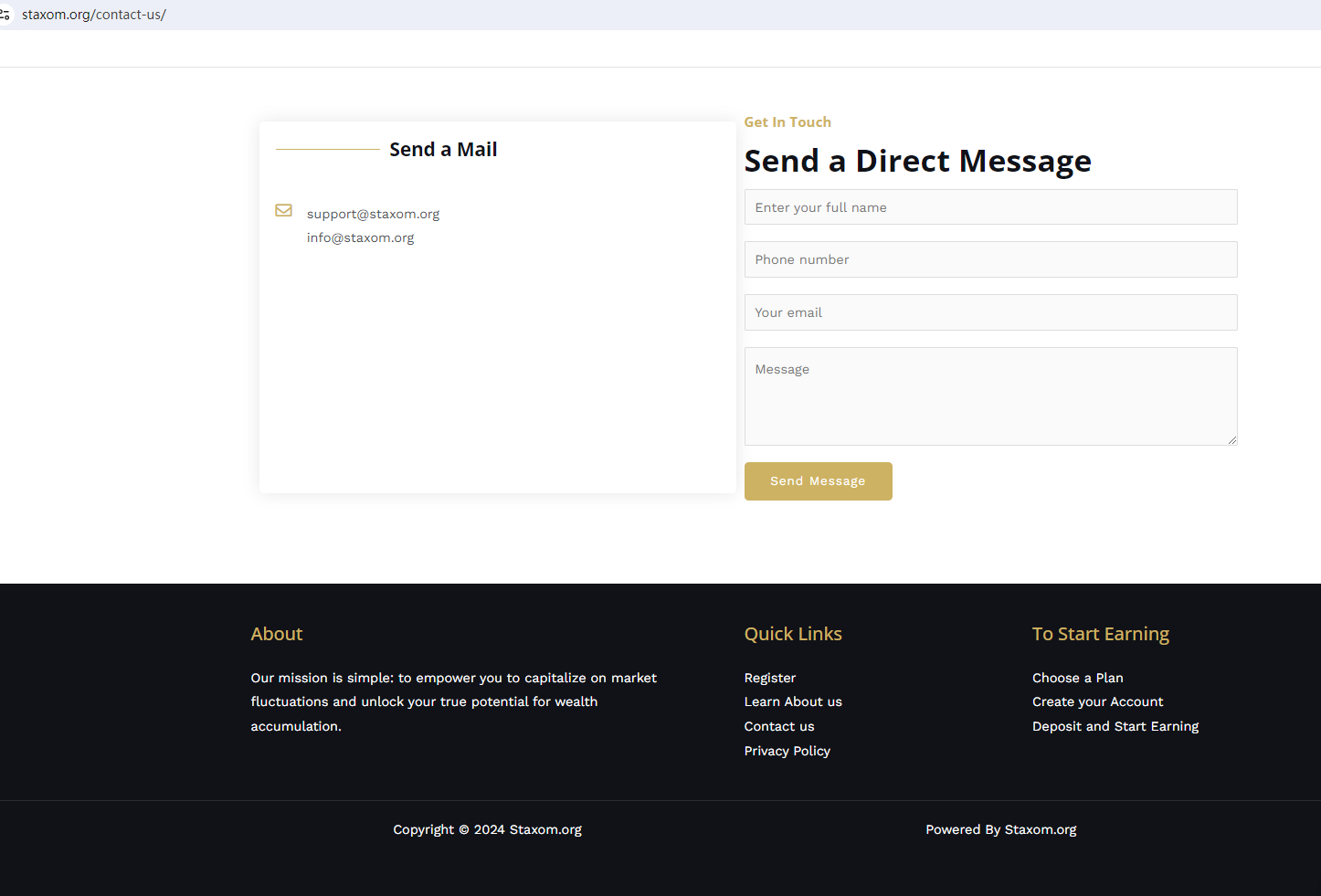 The truth is that Staxom is not regulated by any regulators. Letting it hold or control investors' money is unsafe, and the money can not be protected by any laws.