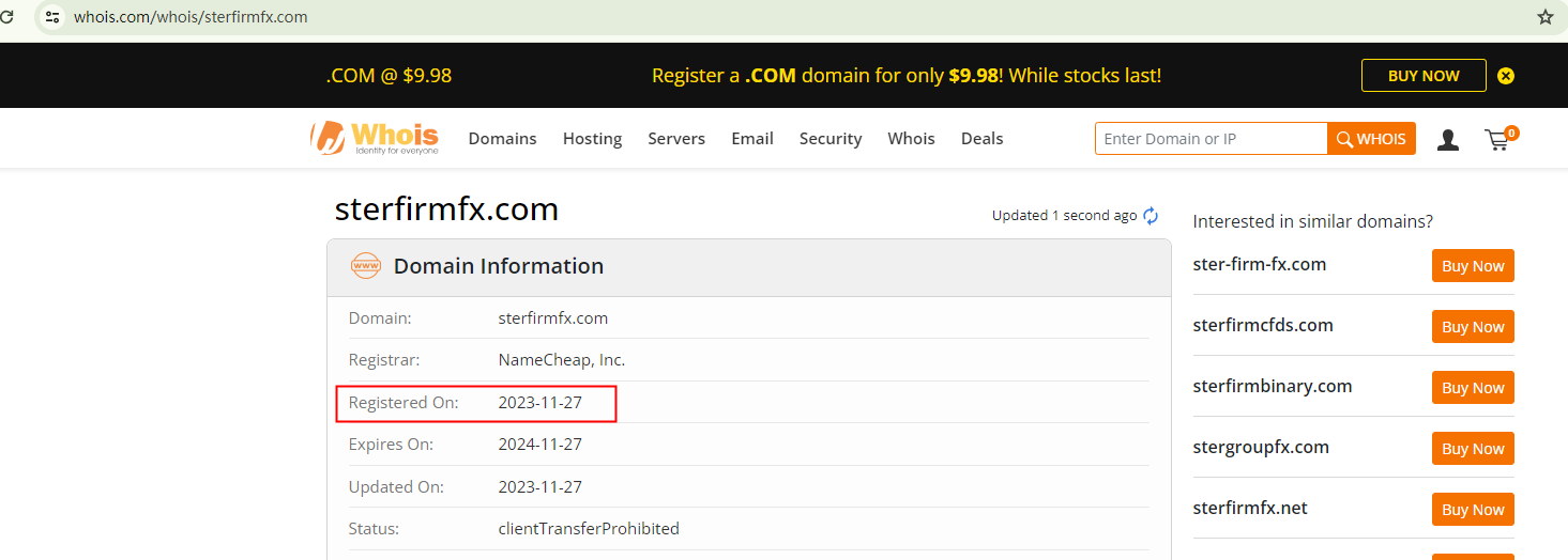 Furthermore, Sterfirm Asset Trade (STERFIRMFX) claims to have been established in 2018. Yet, the registration of its domain name, sterfirmfx.com, only dates back to November 2023. This inconsistency raises red flags and could potentially indicate fraudulent activities.