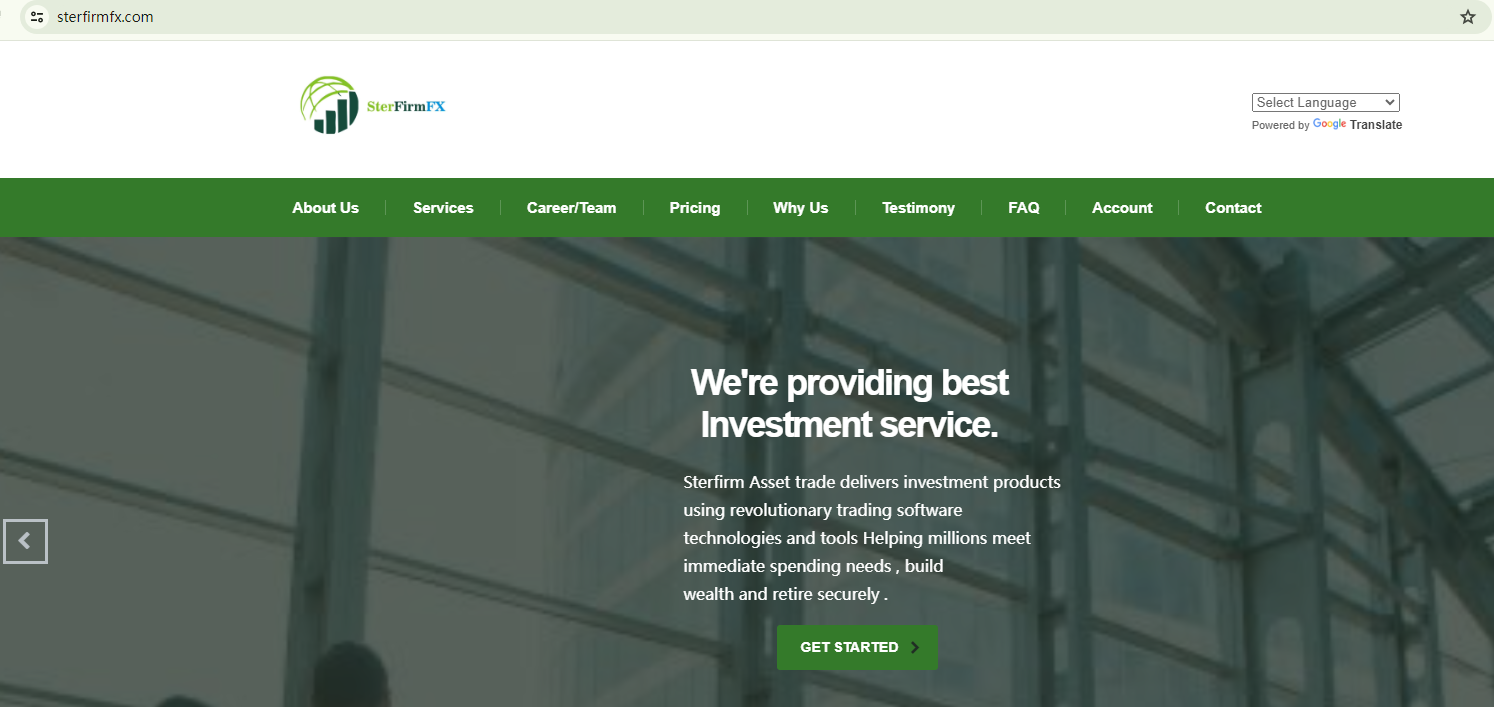 BrokersView found that the domain "https://www.sterfirmfx.com/" is currently inaccessible. This is widely regarded as a significant red flag, as the suspension of a broker's website often points to underlying regulatory or operational issues.