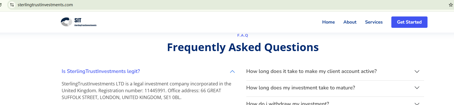SterlingTrustInvestments claims to be registered in the UK, providing a company number 11445991 as the evidence. However, the company associated with the number is BIT ELITUM LTD, which has been dissolved. Apart from this, SterlingTrustInvestments cannot offer any other documentation to back up its legitimacy. The Financial Conduct Authority (FCA) has flagged SterlingTrustInvestments as an unauthorized firm.