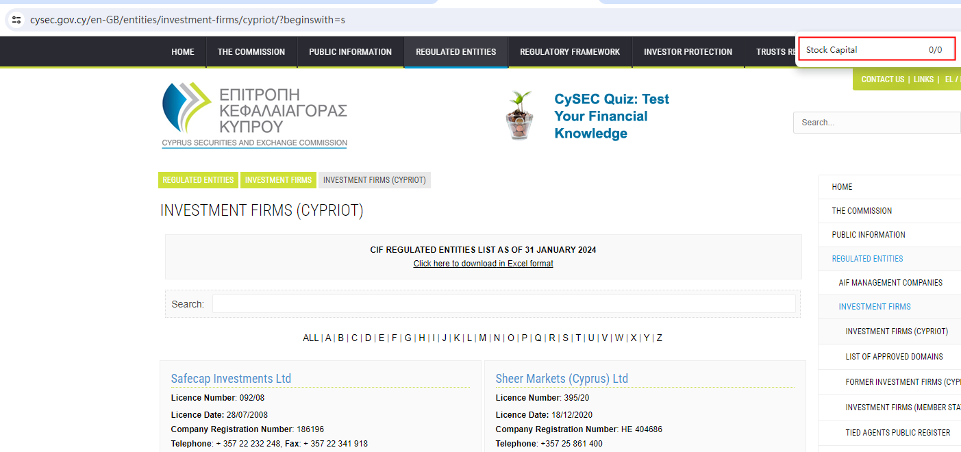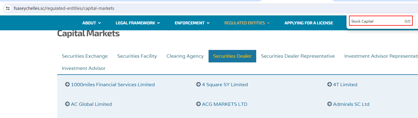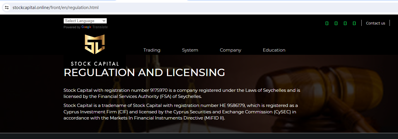 Stock Capital claims to be regulated by the Financial Services Authority (FSA) of Seychelles and the Cyprus Securities and Exchange Commission (CySEC).