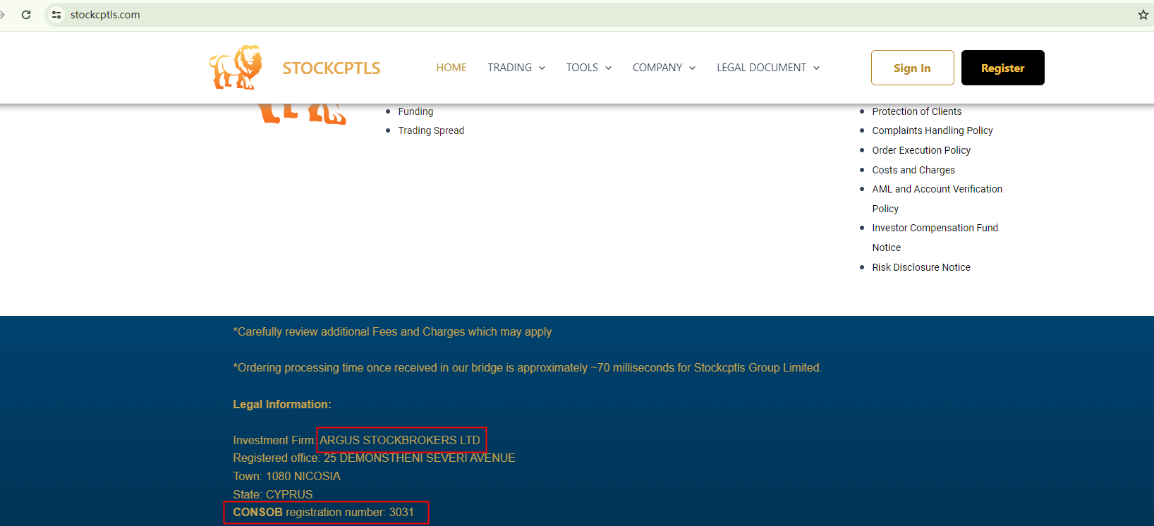 On the other hand, Stockcptls claims that it is operated by an investment firm, Argus Stockbrokers Ltd, which is regulated by the CySEC, and that has a registration number 3031 issued by the Italian Companies and Exchange Commission (CONSOB). Yet, the details provided by the CySEC indicate that Argus Stockbrokers Ltd has no affiliation with Stockcptls. Moreover, the CONSOB has added Stockcptls to its warning list as a fraudulent investment website, contradicting its claims of being supervised by the CONSOB.