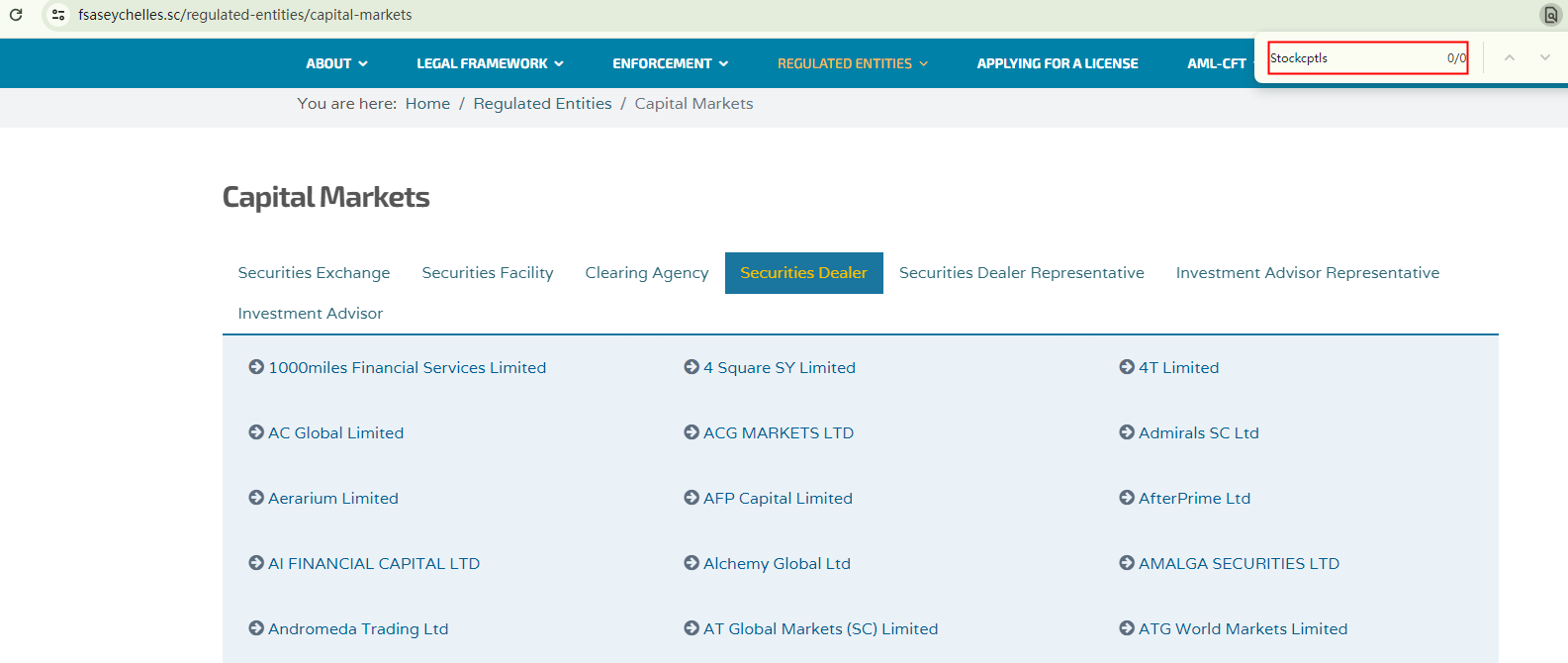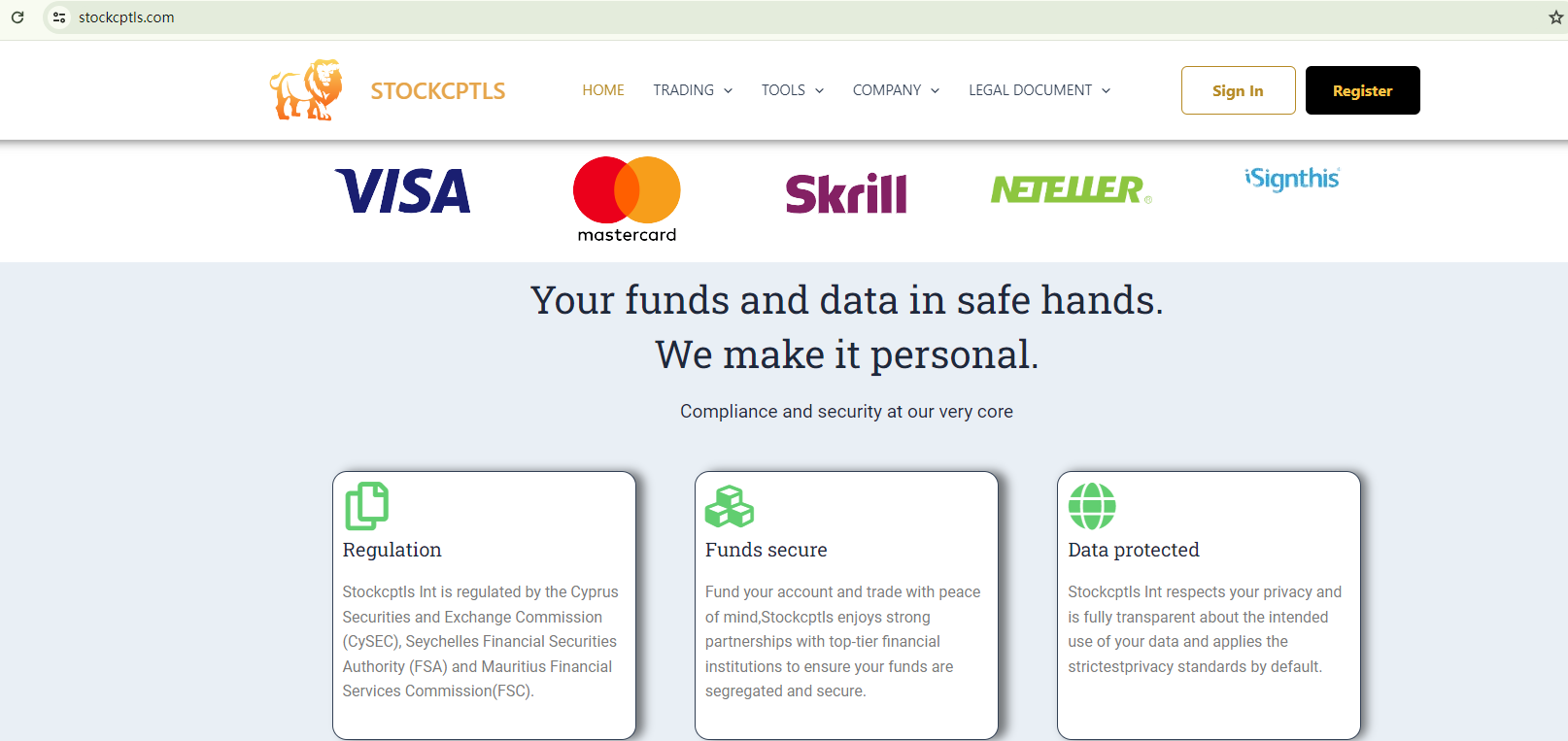 On one hand, the broker purports to be regulated by the Cyprus Securities and Exchange Commission (CySEC), the Seychelles Financial Services Authority (Seychelles FSA), and the Mauritius Financial Services Commission (Mauritius FSC). However, there are no records of "Stockcptls" in the registers of these authorities, suggesting that these claims are unfounded.