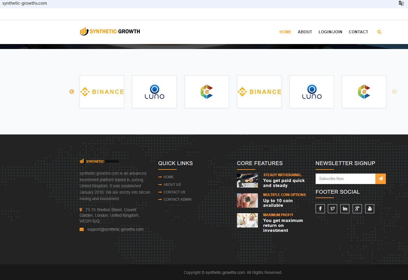 On Nov 30, 2023, the Financial Conduct Authority (FCA) issued a warning against Synthetic growth, believing this company might be providing financial services or products without proper authorization in the UK. https://www.fca.org.uk/news/warnings/synthetic-growth