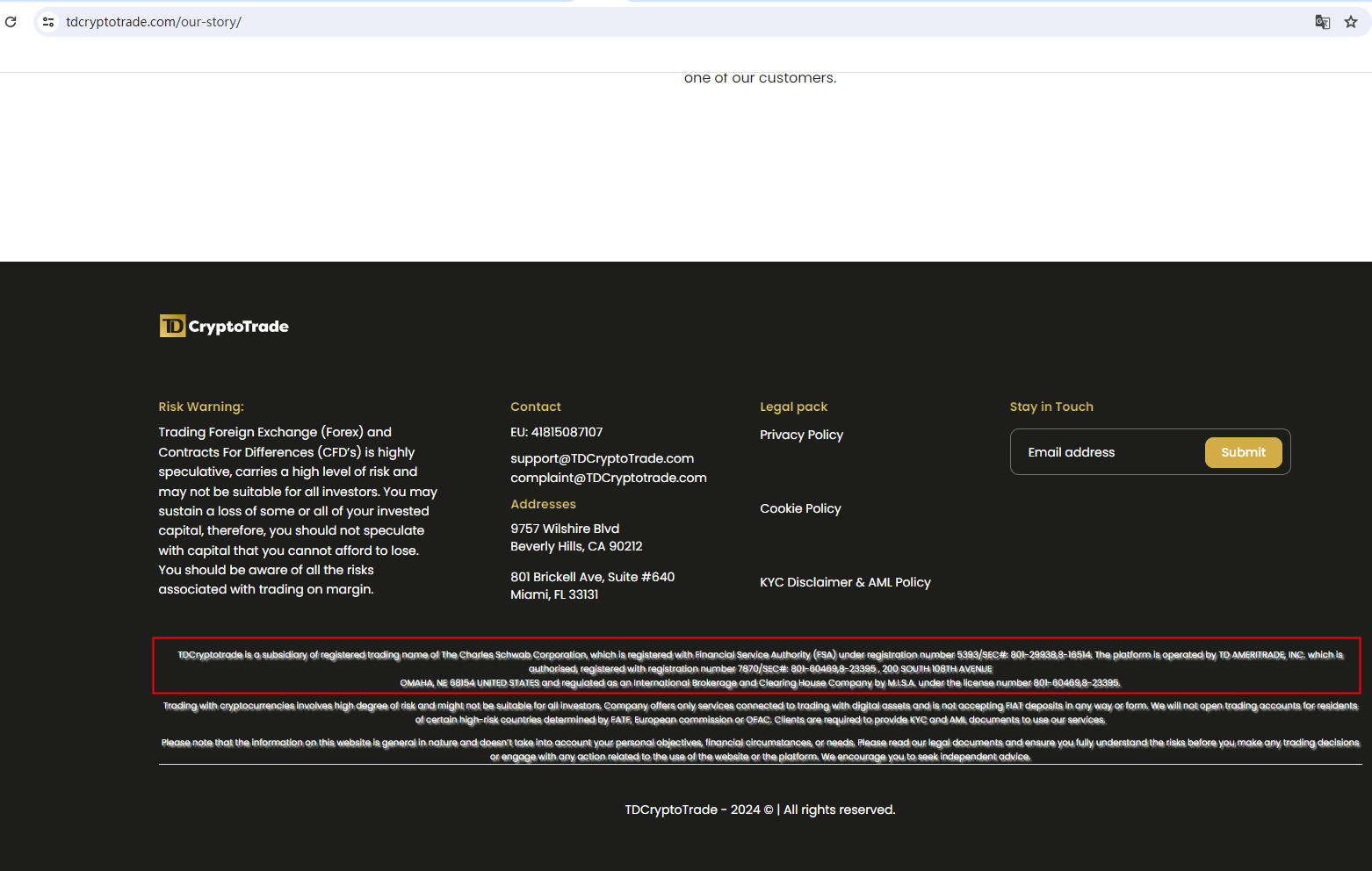 In essence, TDcryptotrade is not regulated by any governing body. Entrusting it with investors' funds is highly risky, as there are no legal protections in place to safeguard the funds.