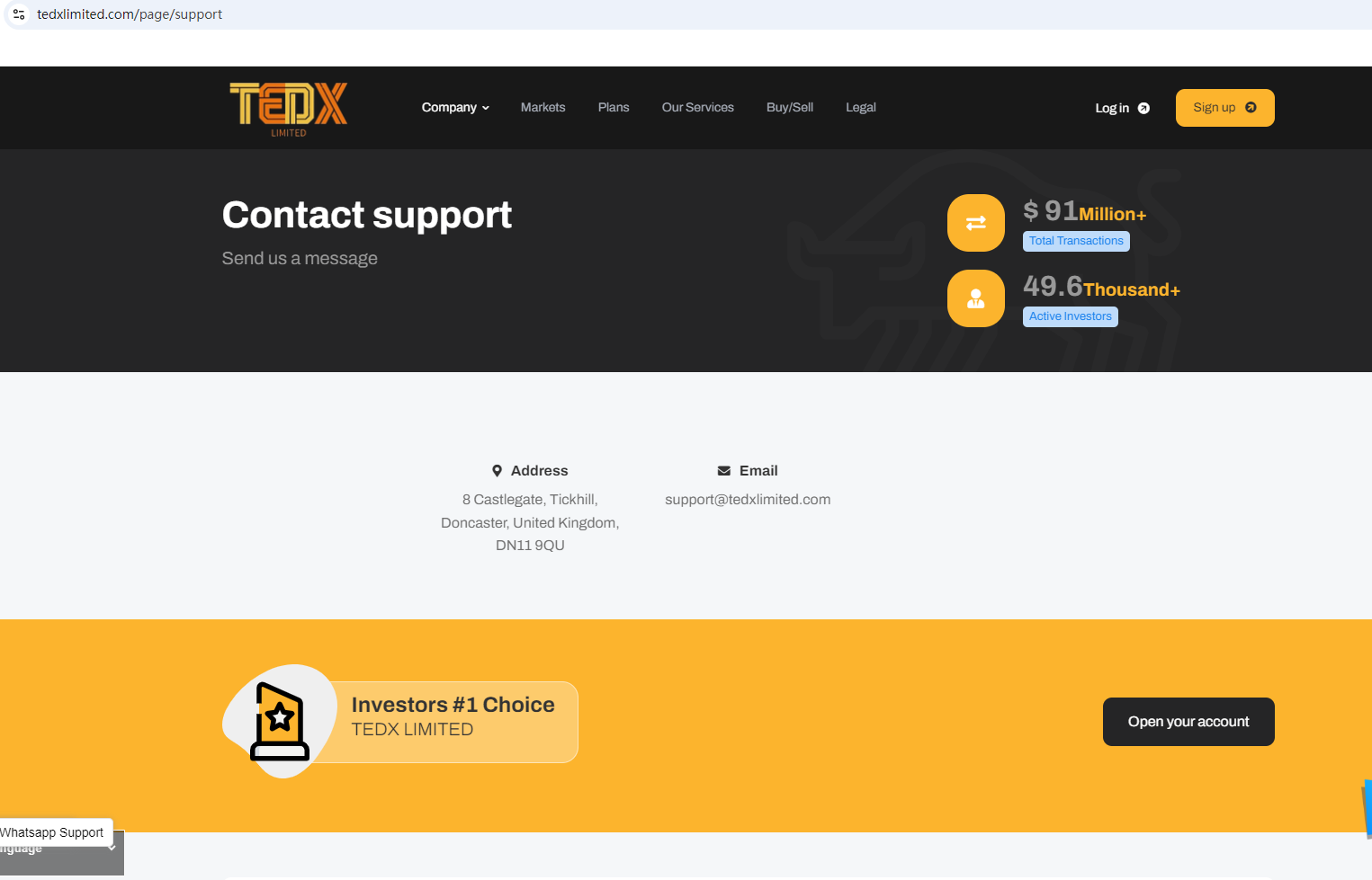 According to its website, it is located in the UK. Upon investigation, we found that the Financial Conduct Authority (FCA) warned against TEDX, believing this company might be providing financial services or products without proper authorization in the UK.