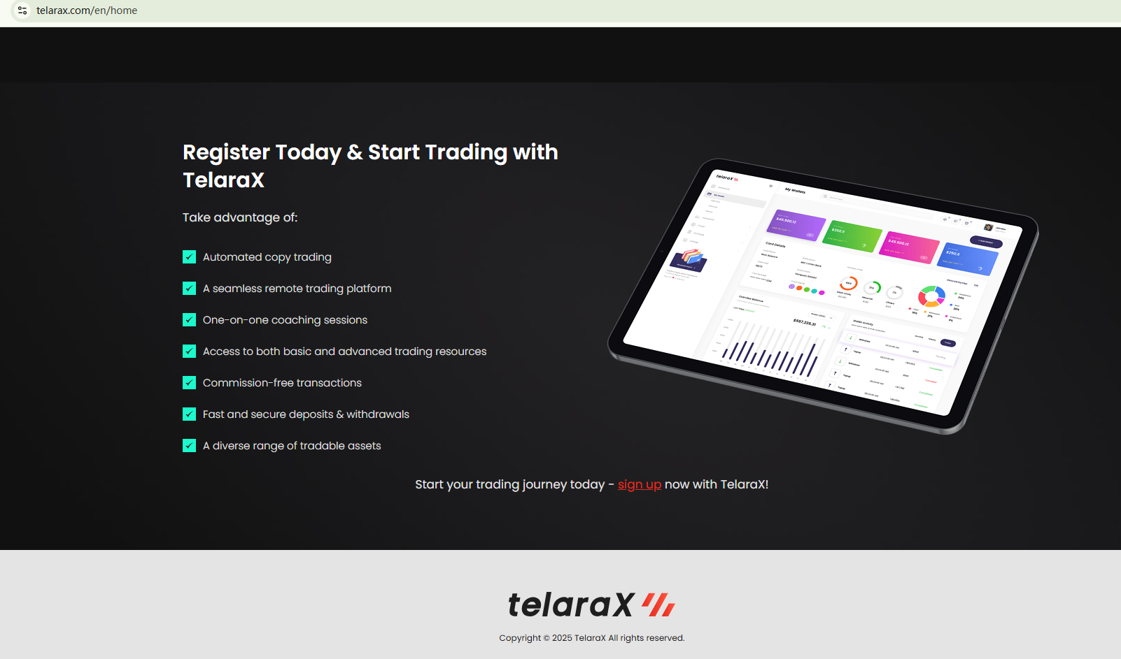 This website seems to be only over 3 months old, with its domain name just registered in February 2025. We looked into this financial site but haven't found any records to suggest that Telarax is registered or regulated. The company behind this brand is almost anonymous due to the lack of company information.