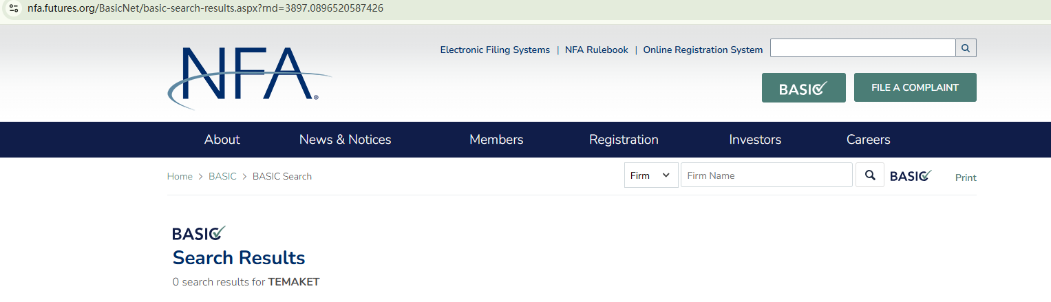 The domain name of Temaket Information Limited was registered in May 2024. While the company claims to be registered with the Financial Crimes Enforcement Network (FINCEN) and regulated by the National Futures Association (NFA), our investigation suggests that Temaket Information Limited is not regulated or authorized at all. The New Zealand Financial Markets Authority (NZ FMA) has blacklisted Temaket Information Limited for operating without the authorization.