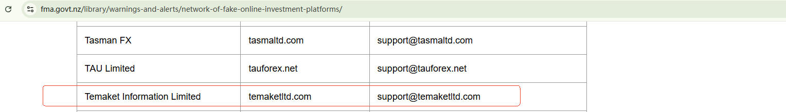 On February 17, 2025, the New Zealand Financial Markets Authority (NZ FMA) released a warning list, advising investors to stay vigilant about 96 suspicious investment websites including Temaket Information Limited. https://www.fma.govt.nz/library/warnings-and-alerts/network-of-fake-online-investment-platforms/