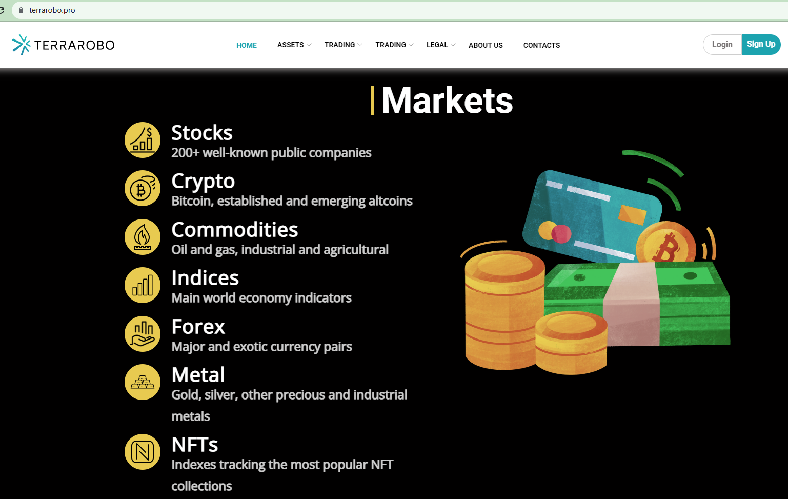 Terrarobo portrays itself as a safe trading platform for trading forex, cryptos and other assets. However, it fails to disclose regulatory information, a significant scam indicator.