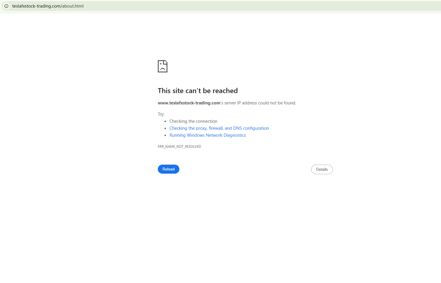 BrokersView found that the domain "https://www.teslafxstock-trading.com/about.html" is currently inaccessible. This is widely regarded as a significant red flag, as the suspension of a broker's website often points to underlying regulatory or operational issues.