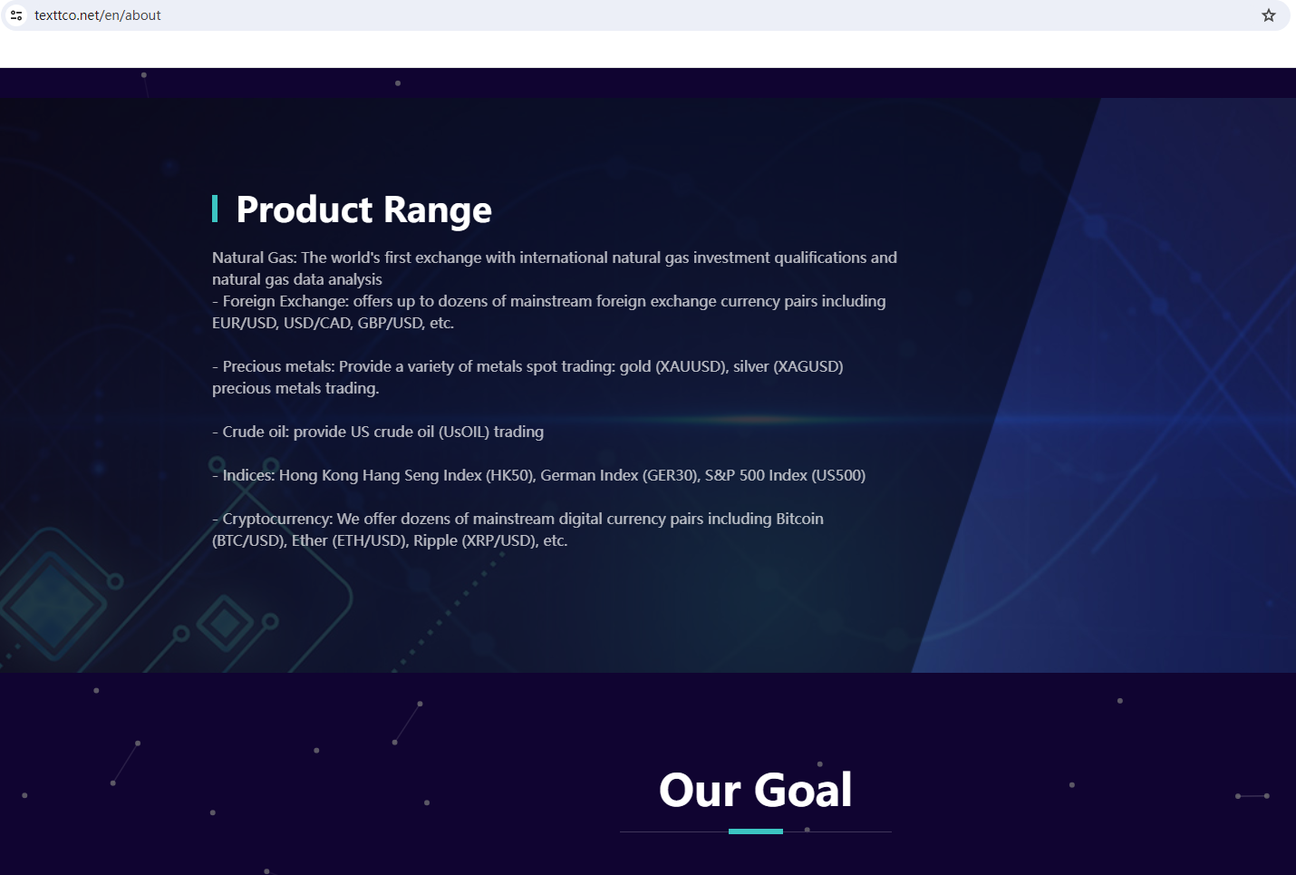 BrokersView found that the domains "https://texttco.net/en/index; http://www.texttco.com/" are currently inaccessible. This is widely regarded as a significant red flag, as the suspension of a broker's website often points to underlying regulatory or operational issues.