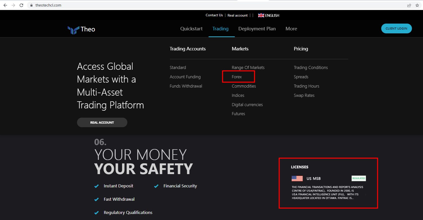Theo claims to be regulated by US Financial Crimes Enforcement Network (FinCEN). We searched the FinCEN and found a matching result. However, FinCEN is not the regulator in charge of forex and CFD brokers. The truth is that Theo is not under valid regulation by any regulators to do forex. Investors' funds in this broker are unsafe and cannot be protected by any law.