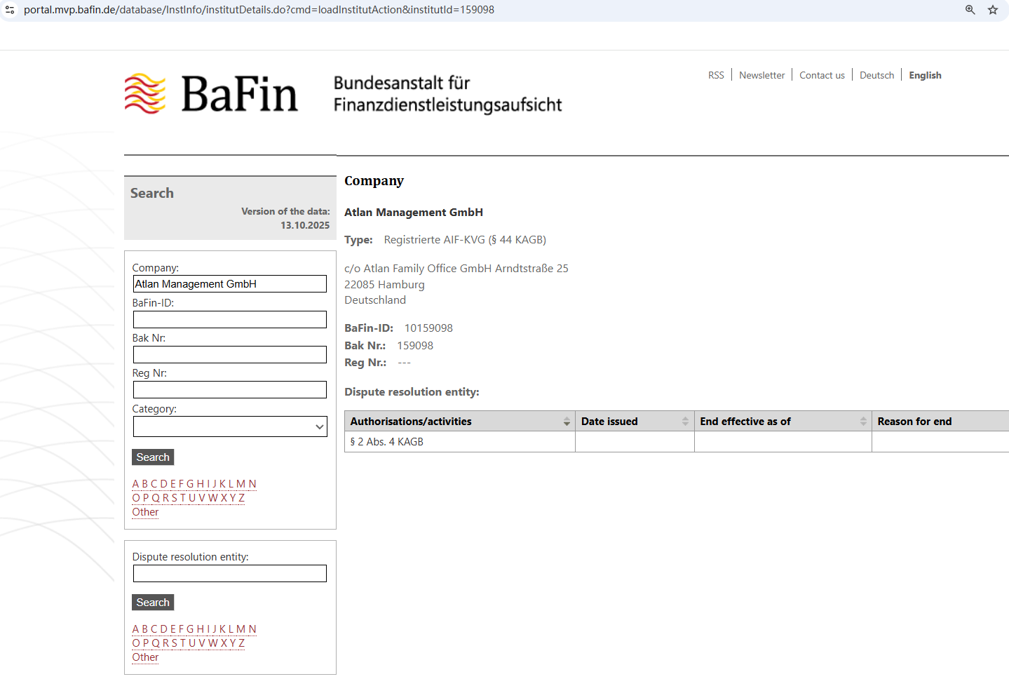 According to its website, it claims to be a reliable company. It states that Alchemy Markets Limited is authorized and regulated by the Cyprus Securities and Exchange Commission (CySEC), a trading name for one of the entities listed below. However, no matching information was found with CySEC. It also mentions a regulated entity, Atlan Management GmbH, at the bottom of its website, which is indeed regulated by the Federal Financial Supervisory Authority (BaFIN). However, there is no evidence of any substantial connection to Atlan Management GmbH, making this information meaningless.