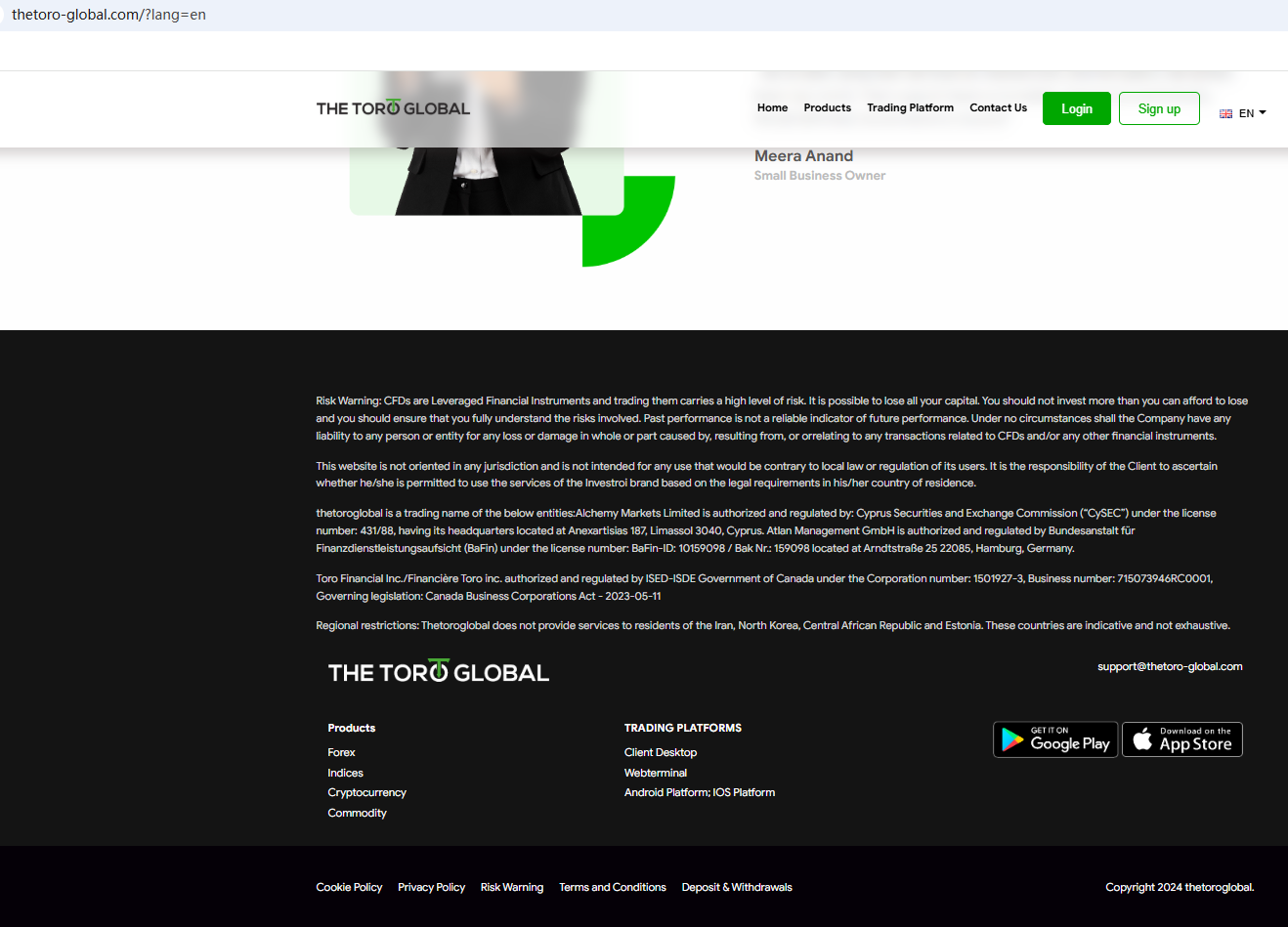 In addition, the Italian Companies and Exchange Commission (CONSOB) ordered Thetoroglobal to be blacked out since it offers financial services illegally in Italy.