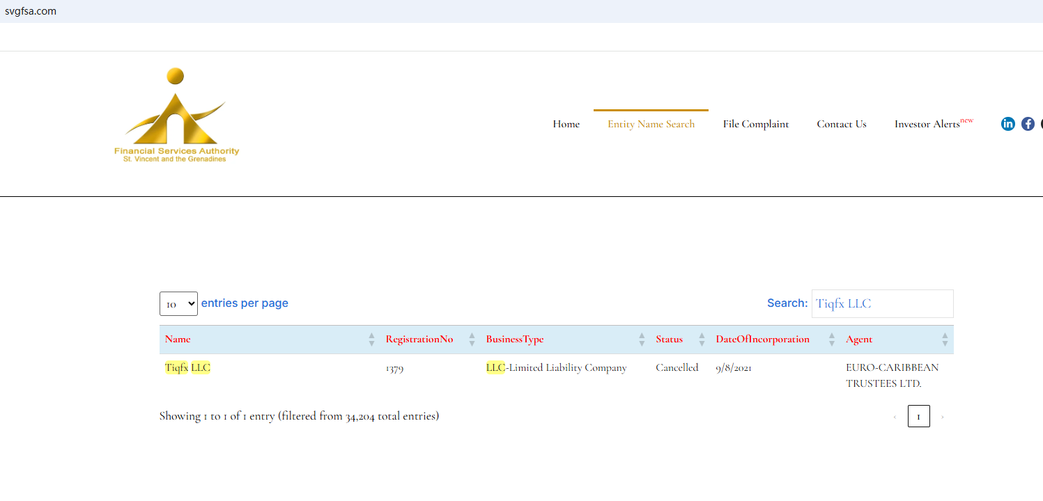 This website is invalid and will automatically jump to a gambling website. The claimed registration with the Financial Services Authority of St. Vincent and The Grenadines (SVG FSA) has been canceled as well. All the signs indicate substantial risks of Tiqfx. Investors should be informed about the development and stay clear of it.