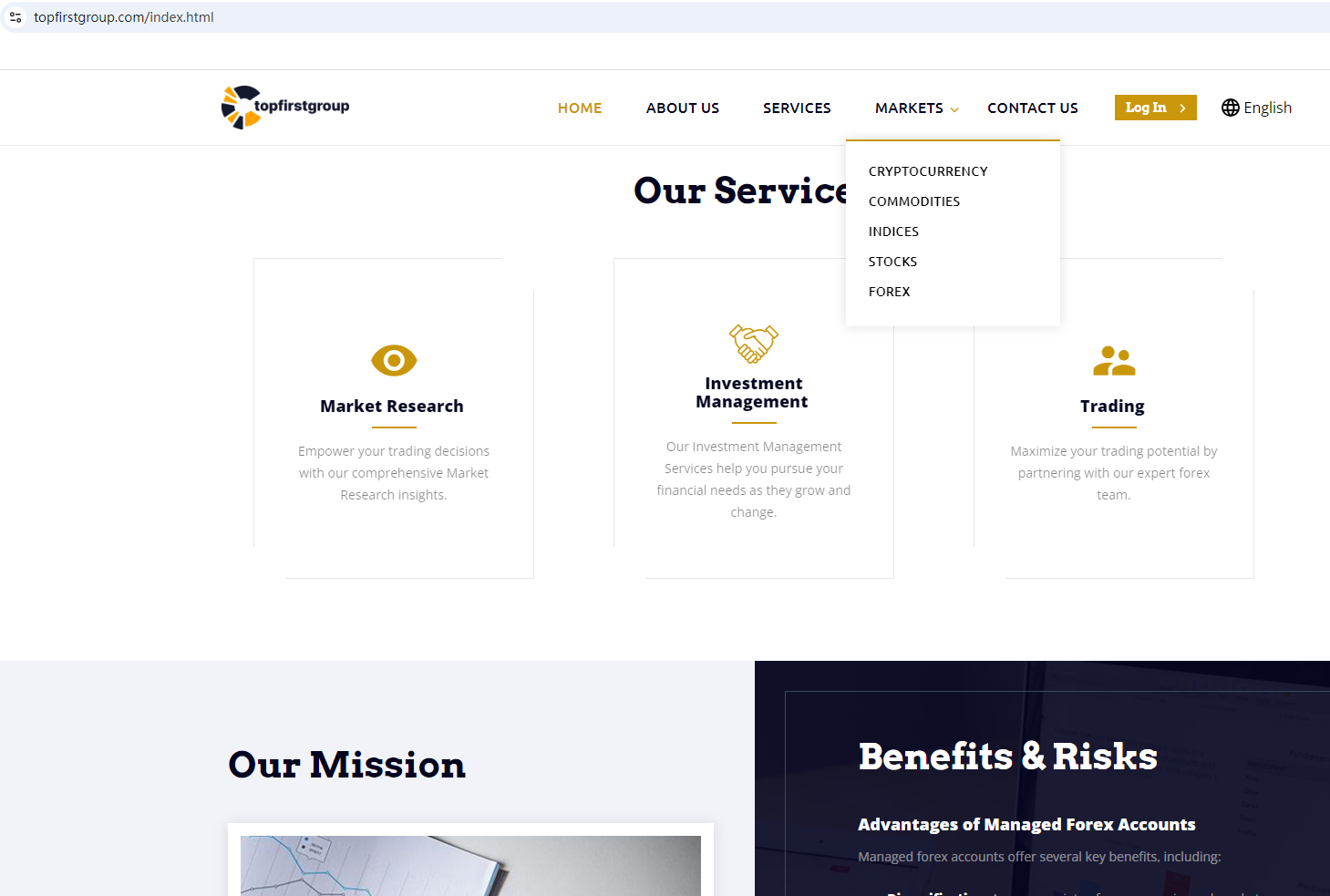 The truth is that Top First Group is not regulated by any regulators. Letting it hold or control investors' money is unsafe, and the money can not be protected by any laws.
