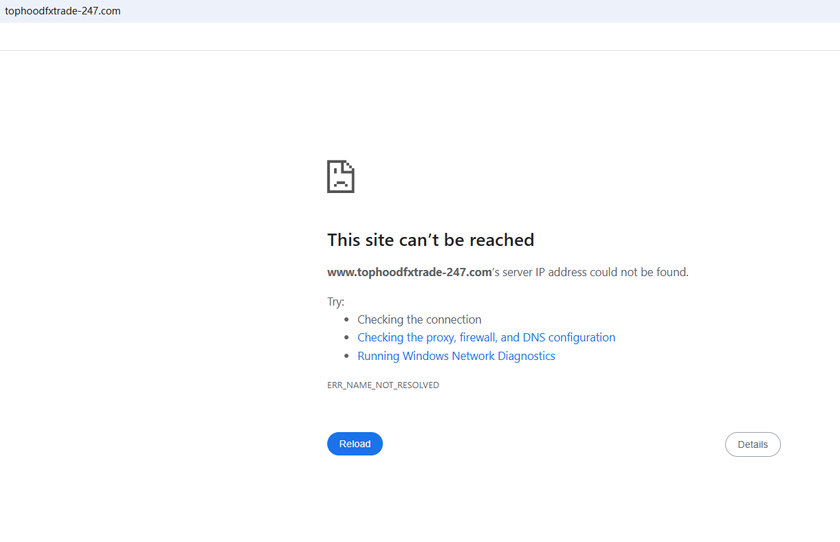 BrokersView found that the domain "https://www.tophoodfxtrade-247.com/" is currently inaccessible. This is widely regarded as a significant red flag, as the suspension of a broker's website often points to underlying regulatory or operational issues.