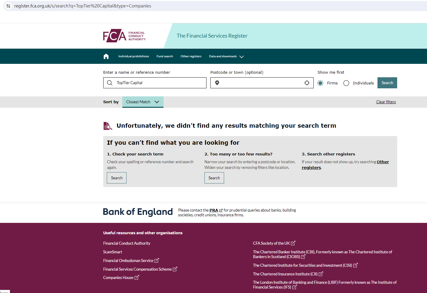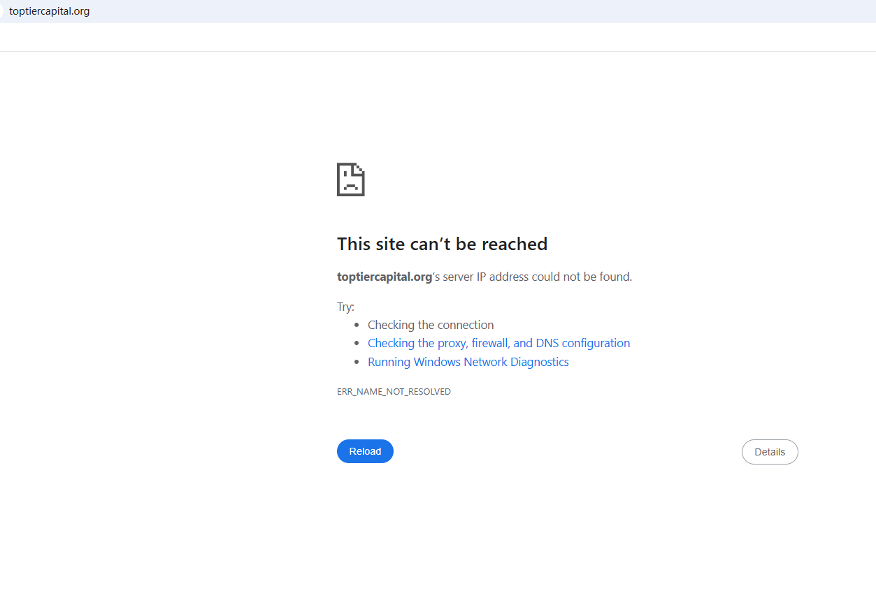 BrokersView found that the domains "https://toptier-capital.io/; https://toptiercapital.org/" are currently inaccessible. This is widely regarded as a significant red flag, as the suspension of a broker's website often points to underlying regulatory or operational issues.